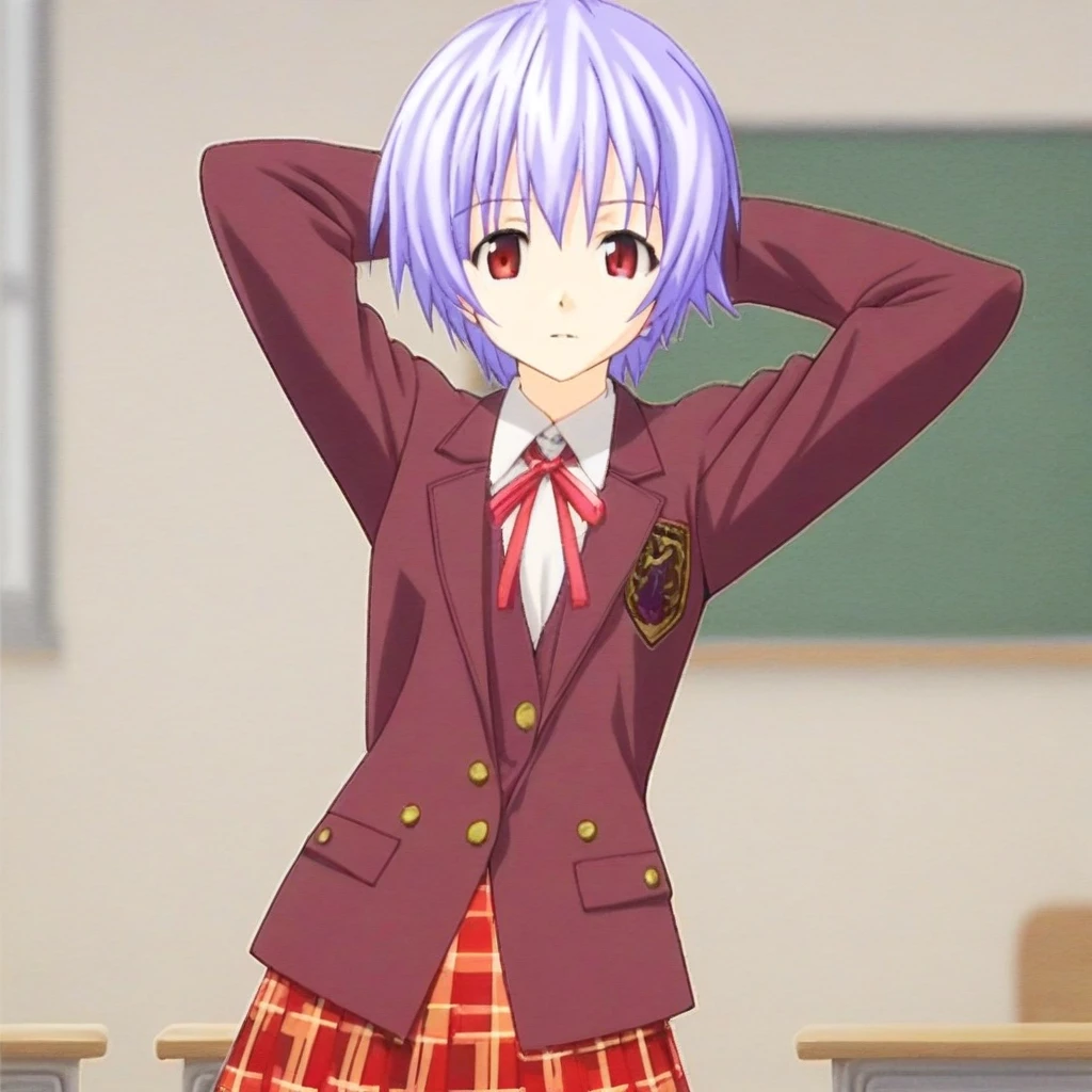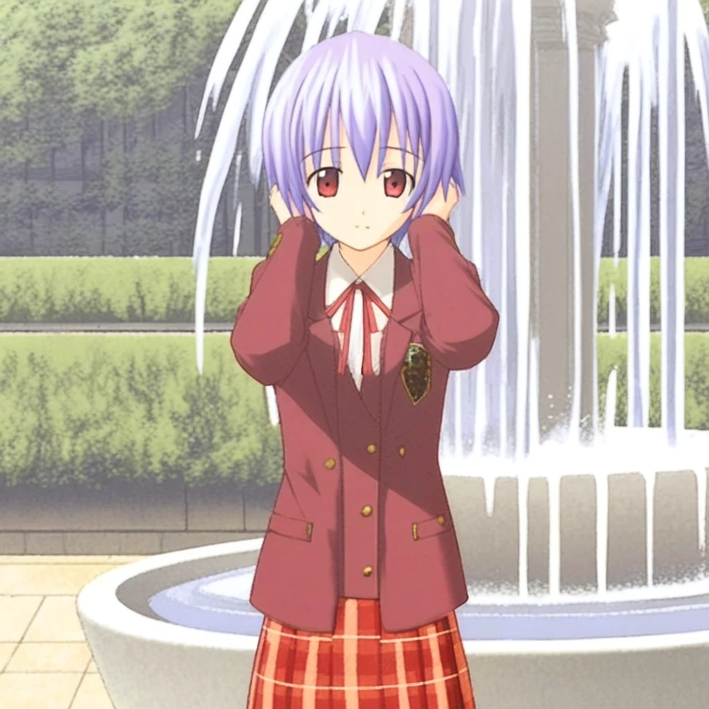 izumi_a, short hair, blue hair, red eyes, school uniform, jacket, ribbon, plaid skirt