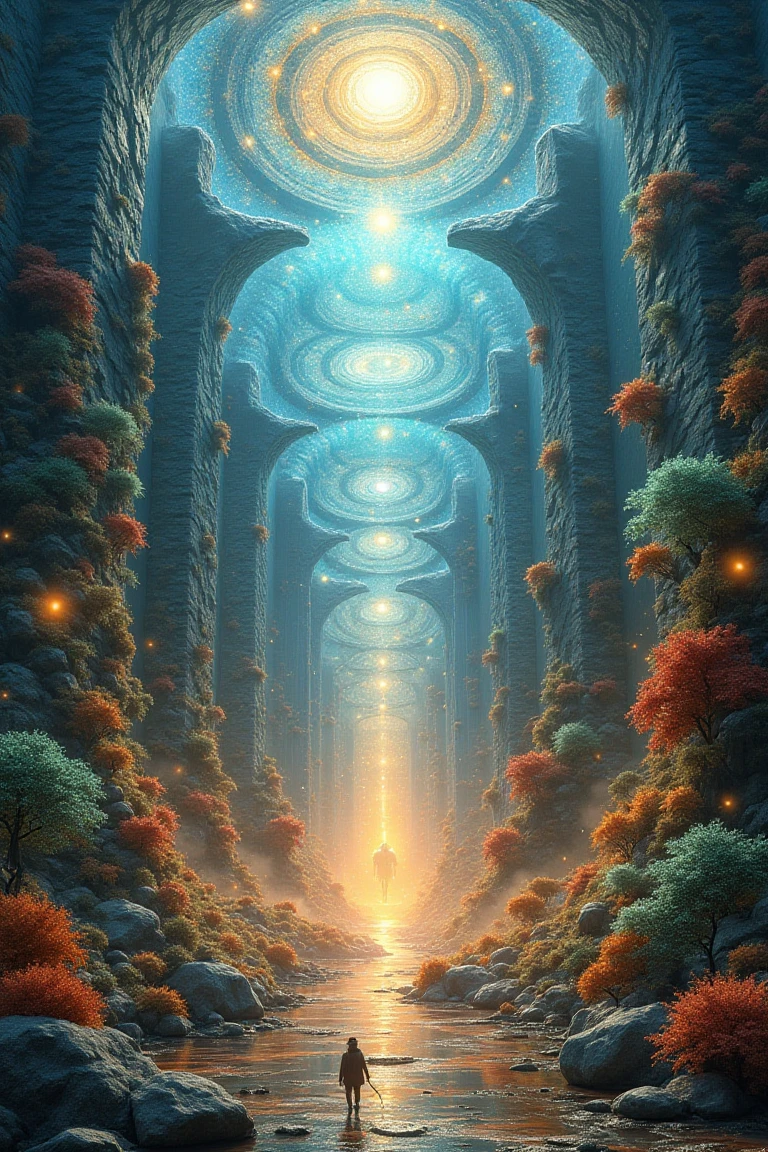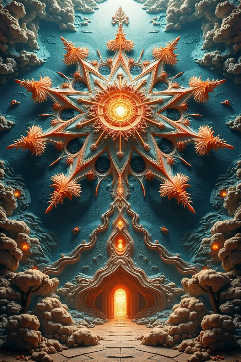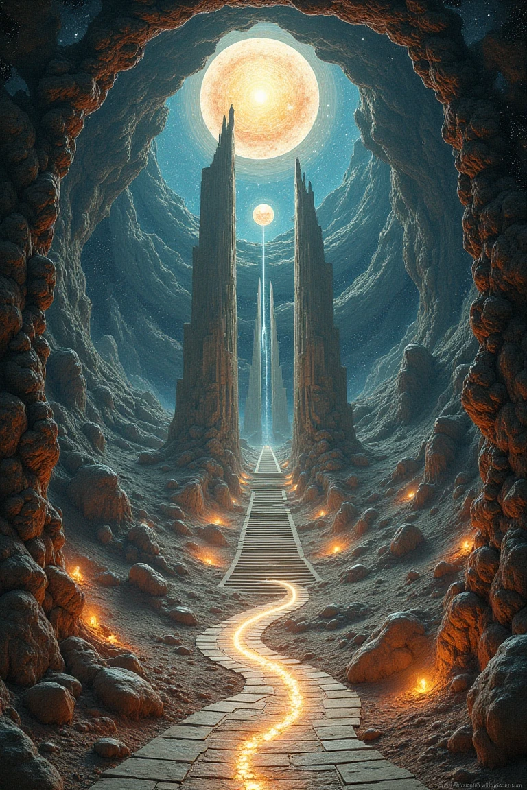 "Visionary art exploring metaphysics, occult symbolism, and alternate dimensions. Sacred geometry, interdimensional architecture, esoteric cosmology, flowing organic forms, luminous structures, non-linear time."