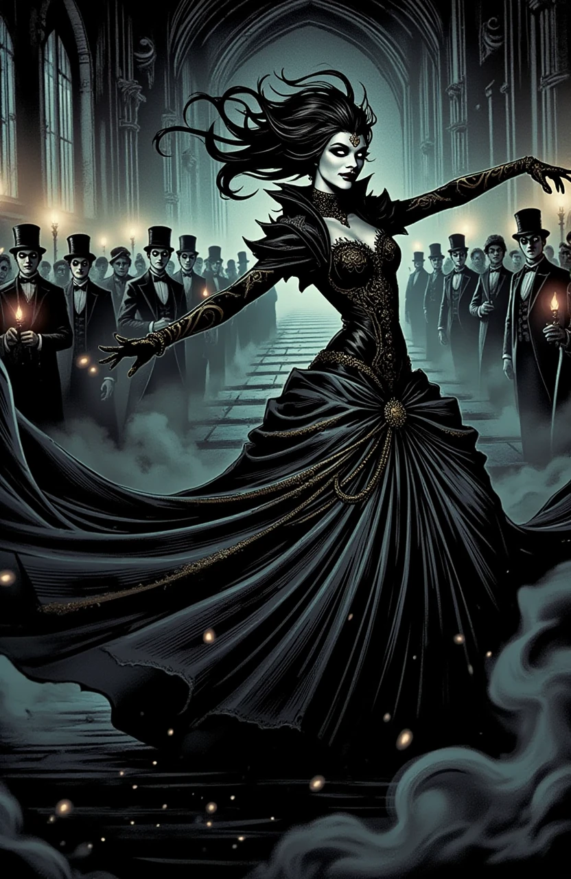 Dark ink style, best for horror, gothic and noir themed illustrations.