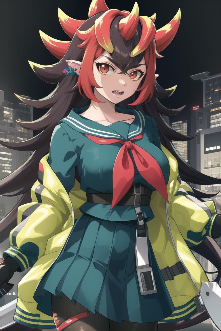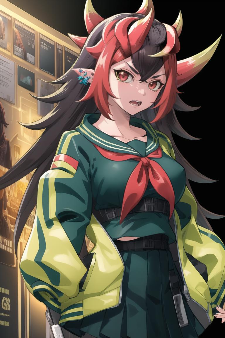 This model was trained using 18 images of her. It was trained on the NAI model so it should work with most anime based models.