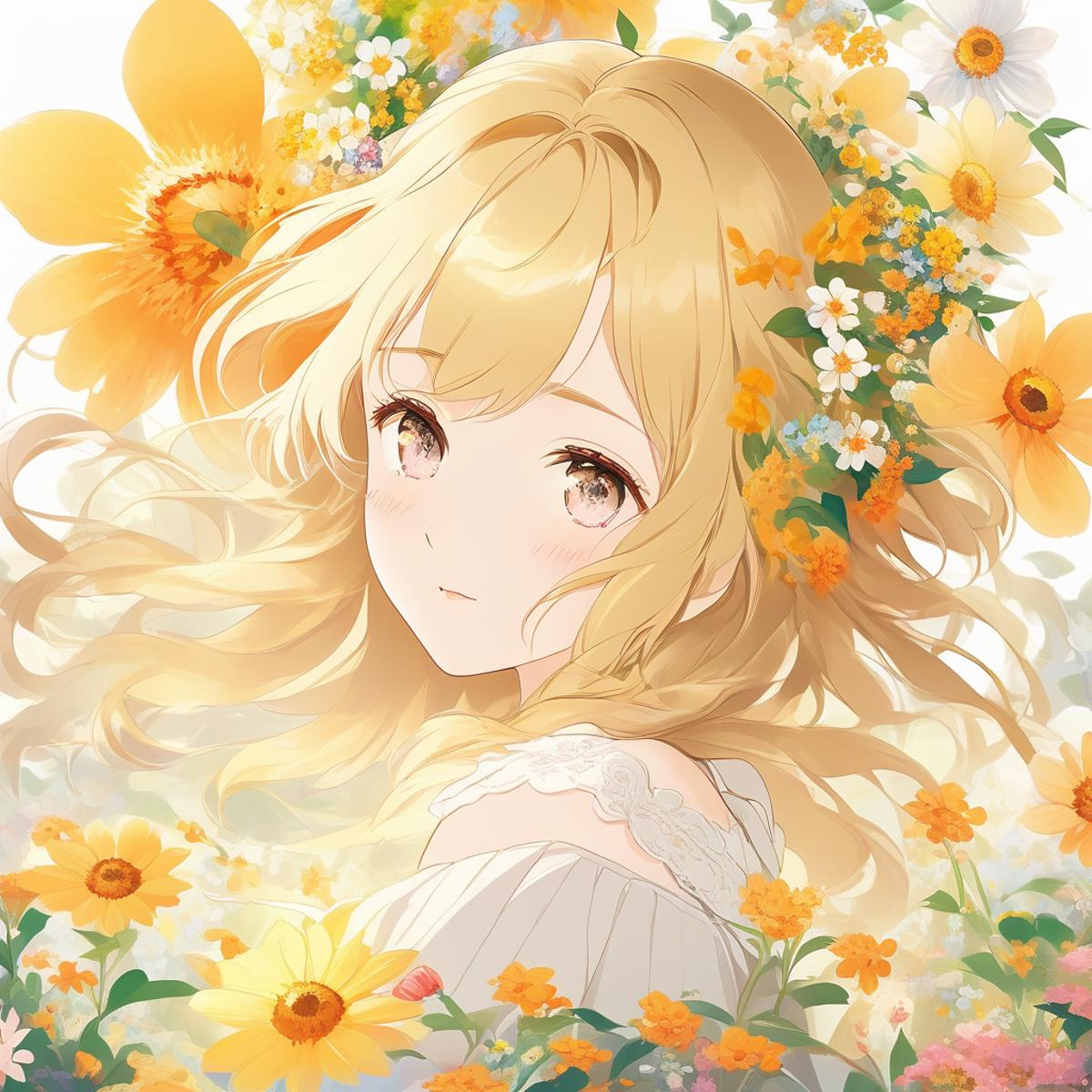 masterpiece, best quality, high quality, absurdres, 1girl, flower