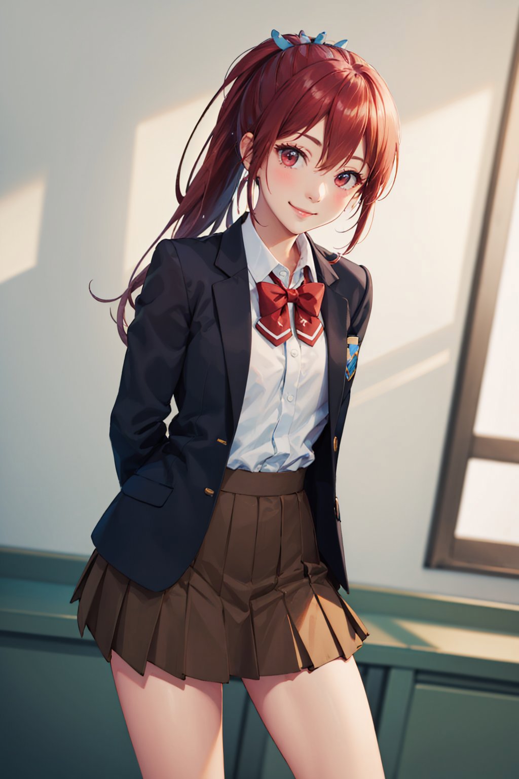 Default Outfit: school uniform, jacket, skirt, kneehighs