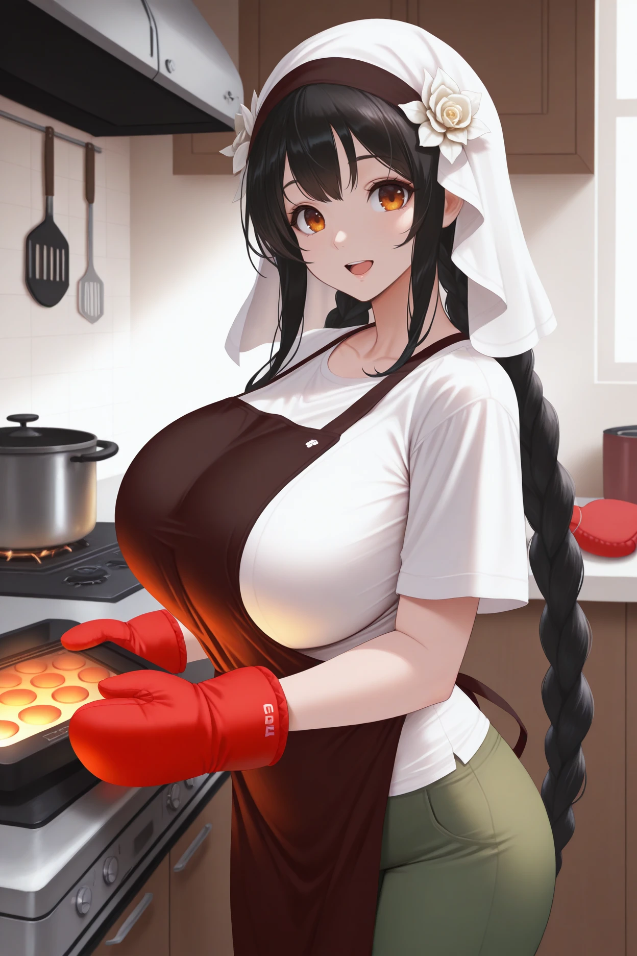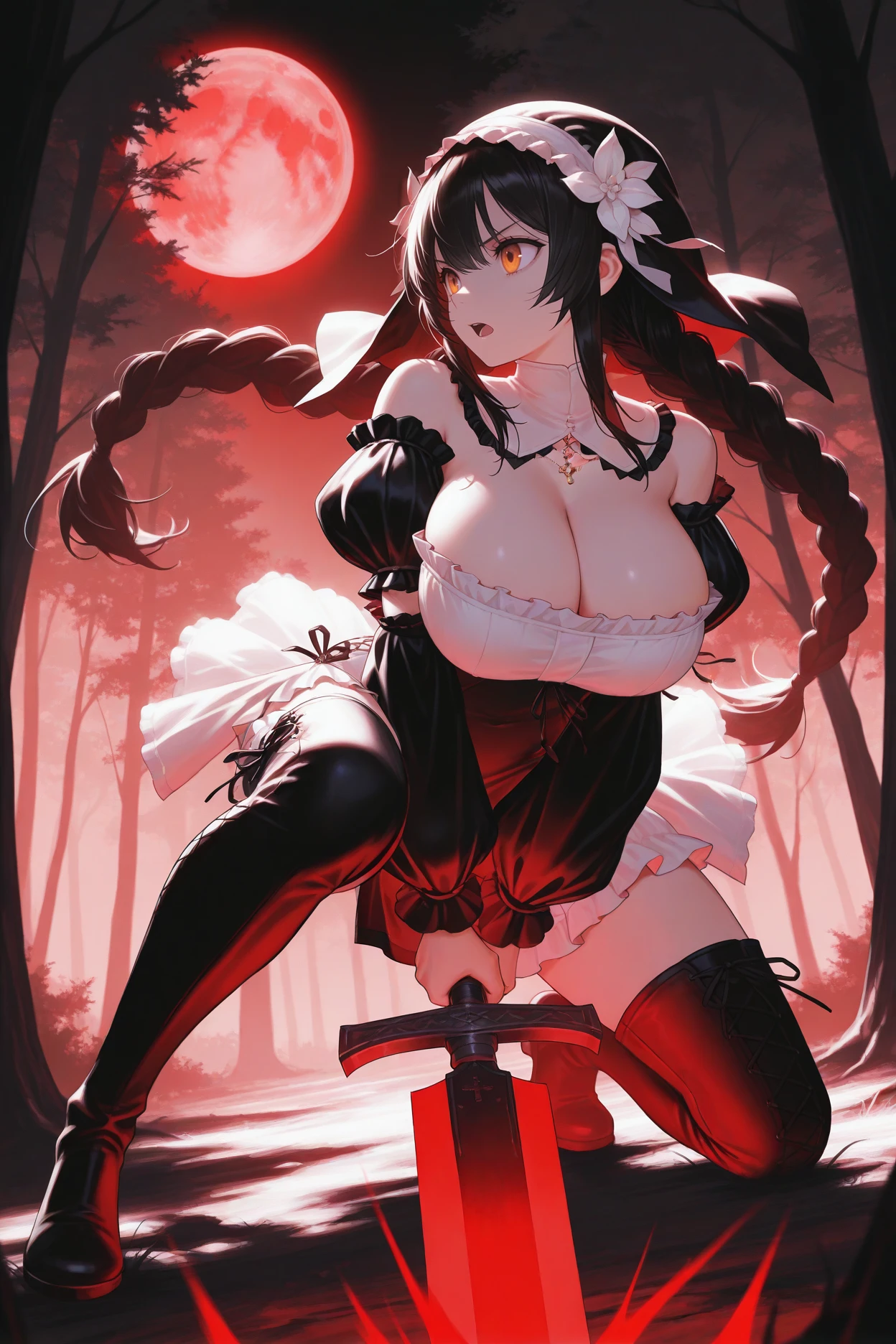 Trigger word is "rbane" and "black hair, low twin braids, amber eyes" is required.