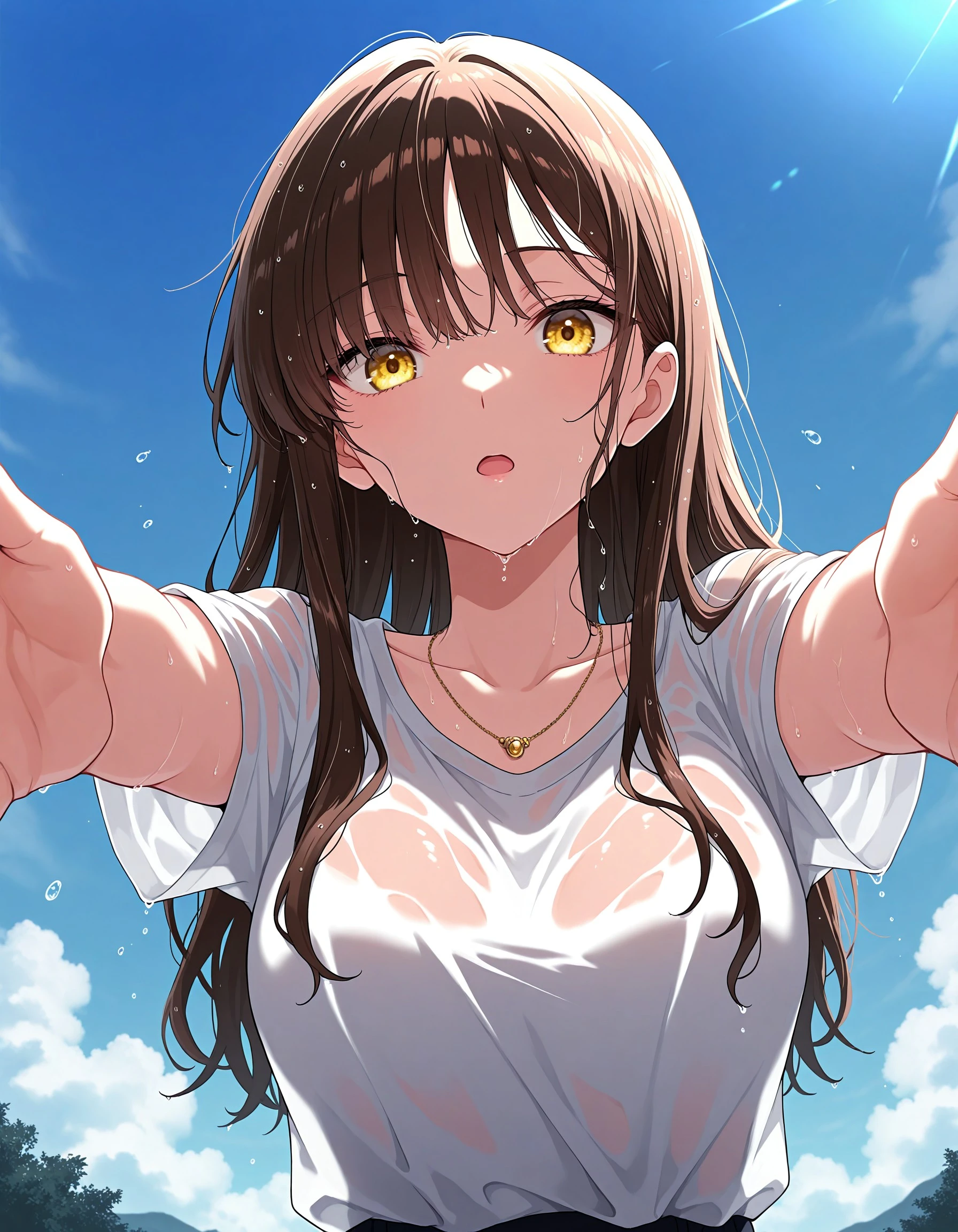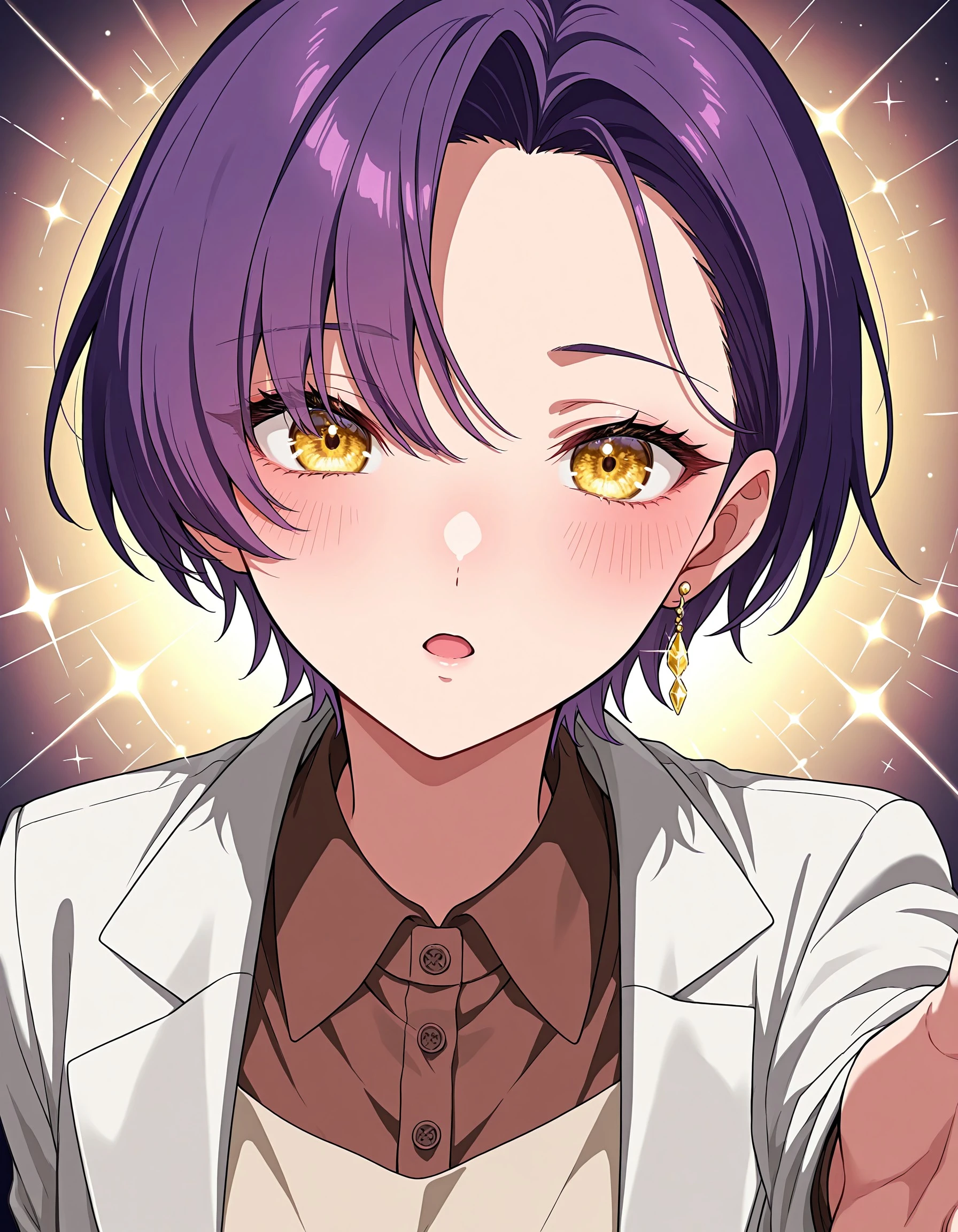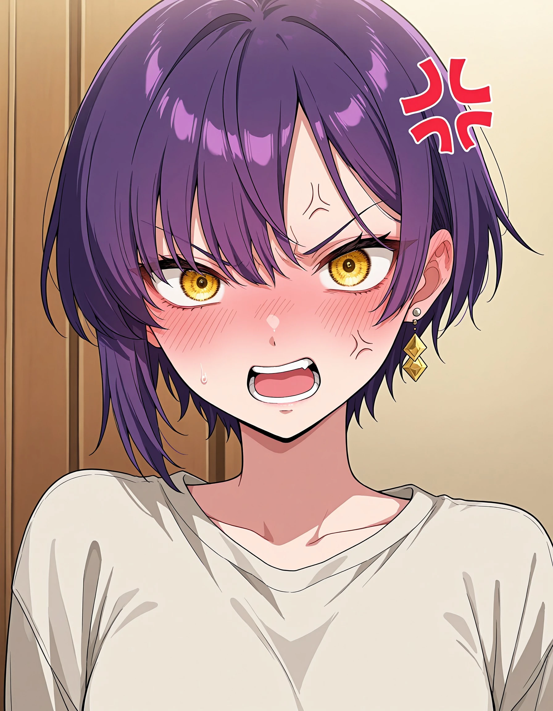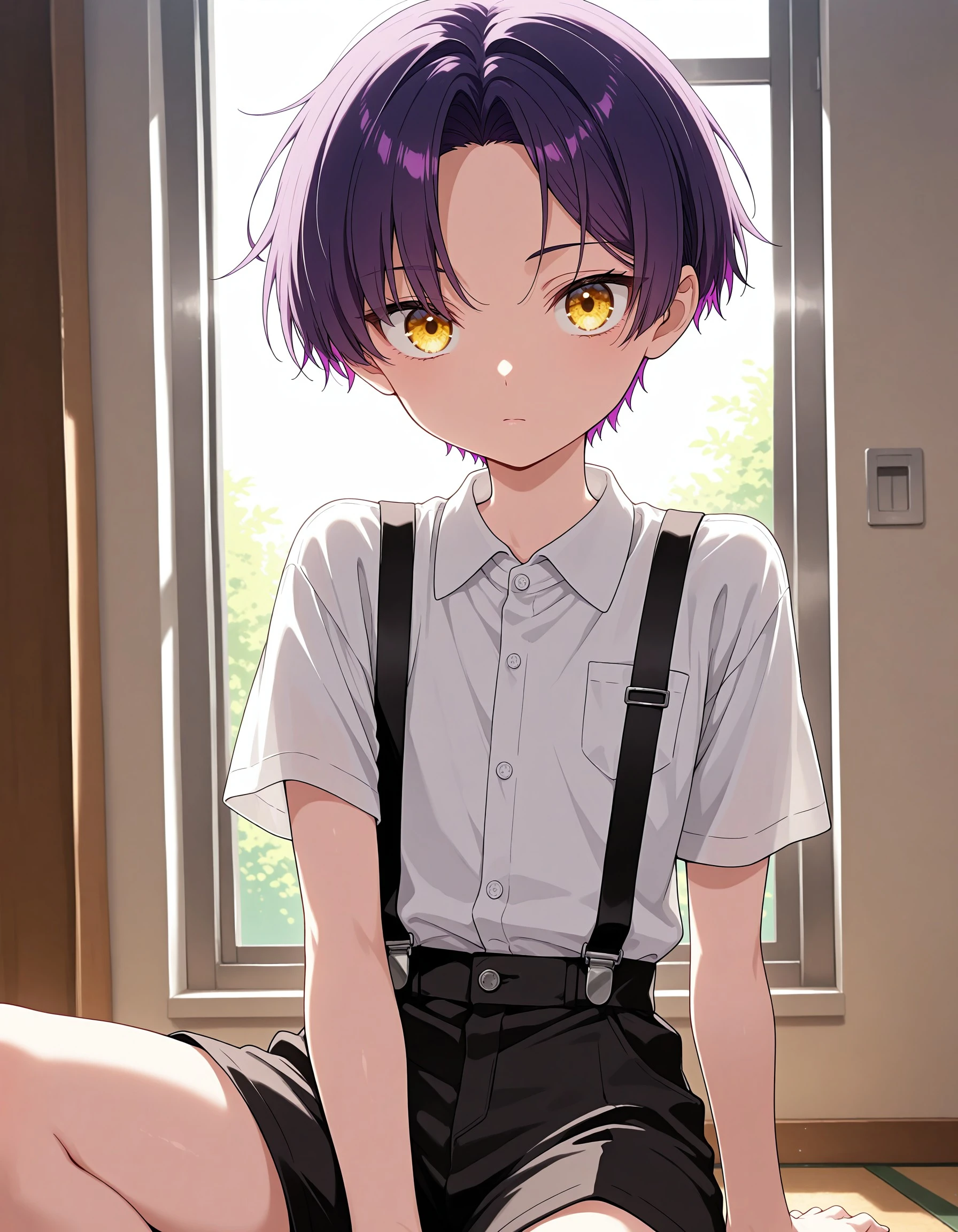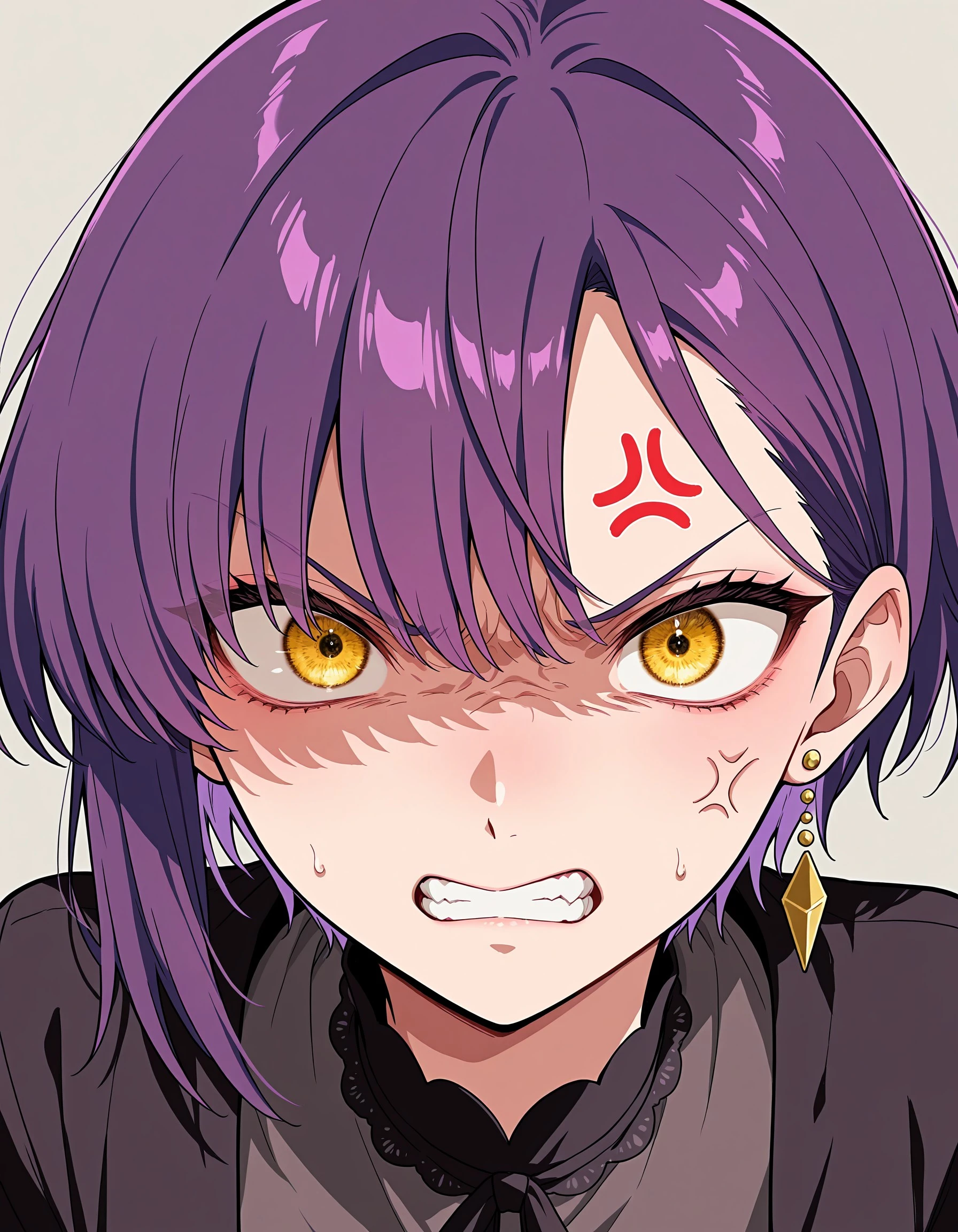 medium hair, purple hair, pink inner hair, hairclip, x hair ornament, french braid