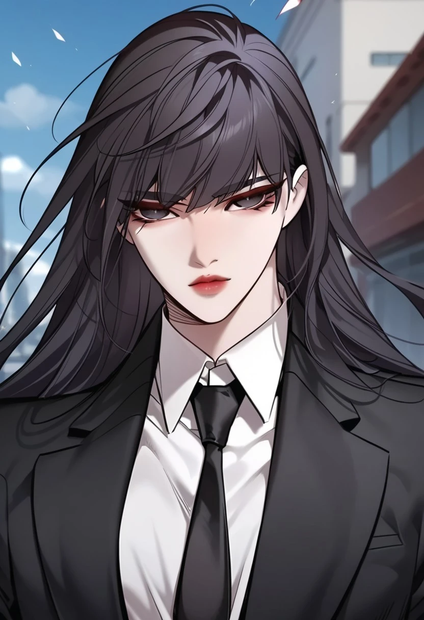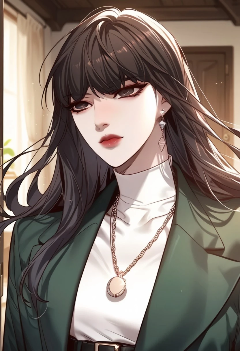 jiyoungyoo,1girl, solo, long hair, black hair, bangs, black eyes,