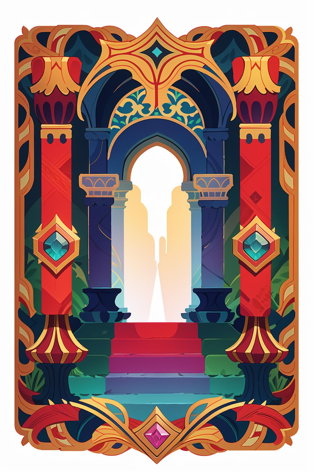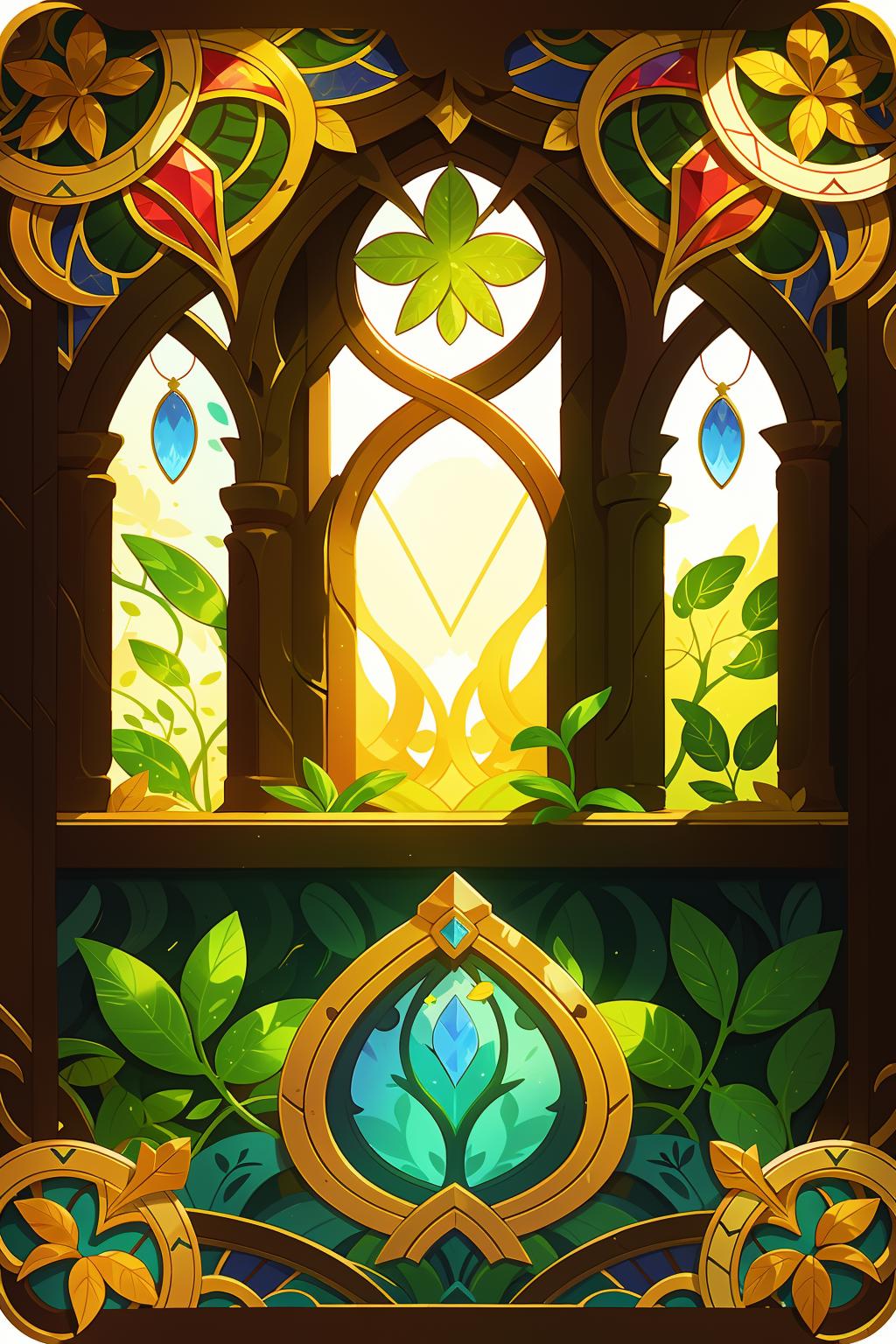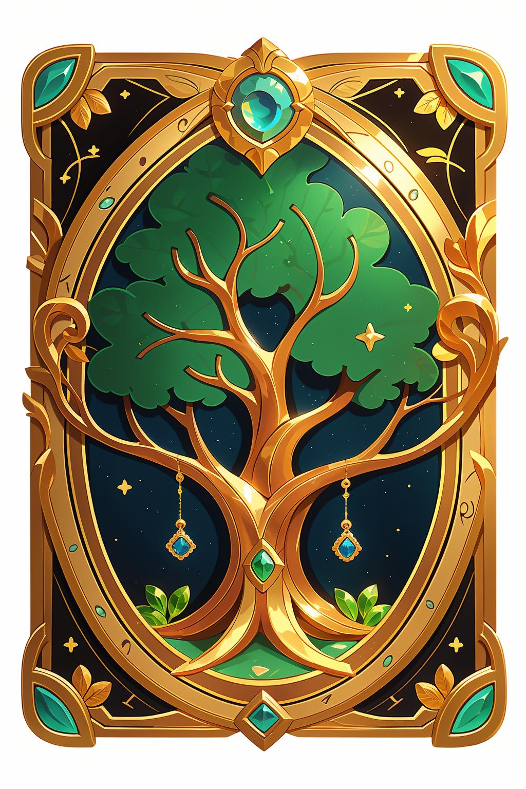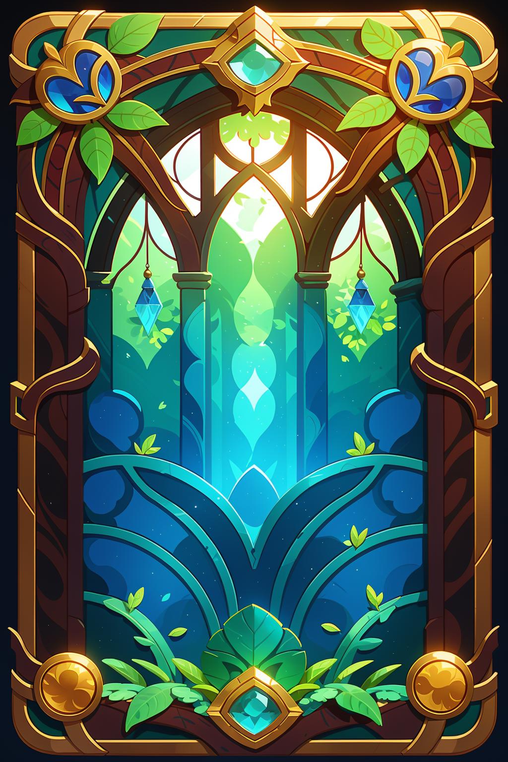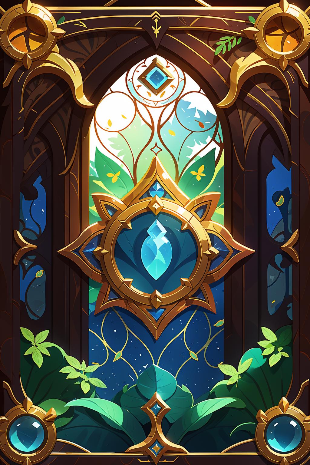 镀金边框风格关键词:概念艺术,游戏卡牌,金色边框,浮雕
