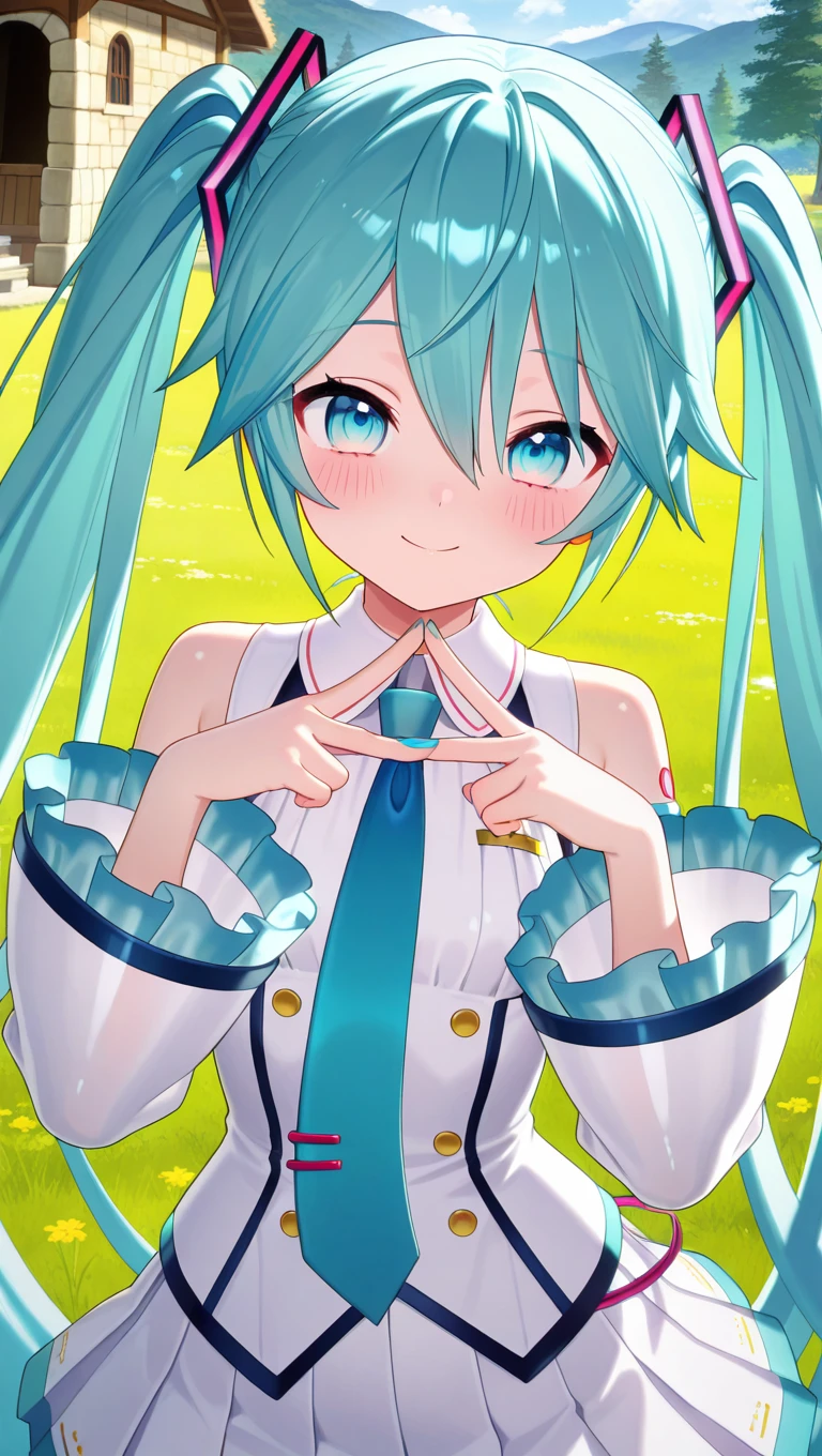 very long hair,aqua hair,twintails,hair ornament,hair between eyes,aqua eyes