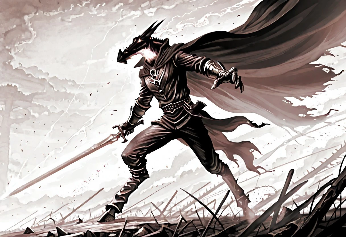 nemesisthewarlock, 1boy, solo, male focus, cape