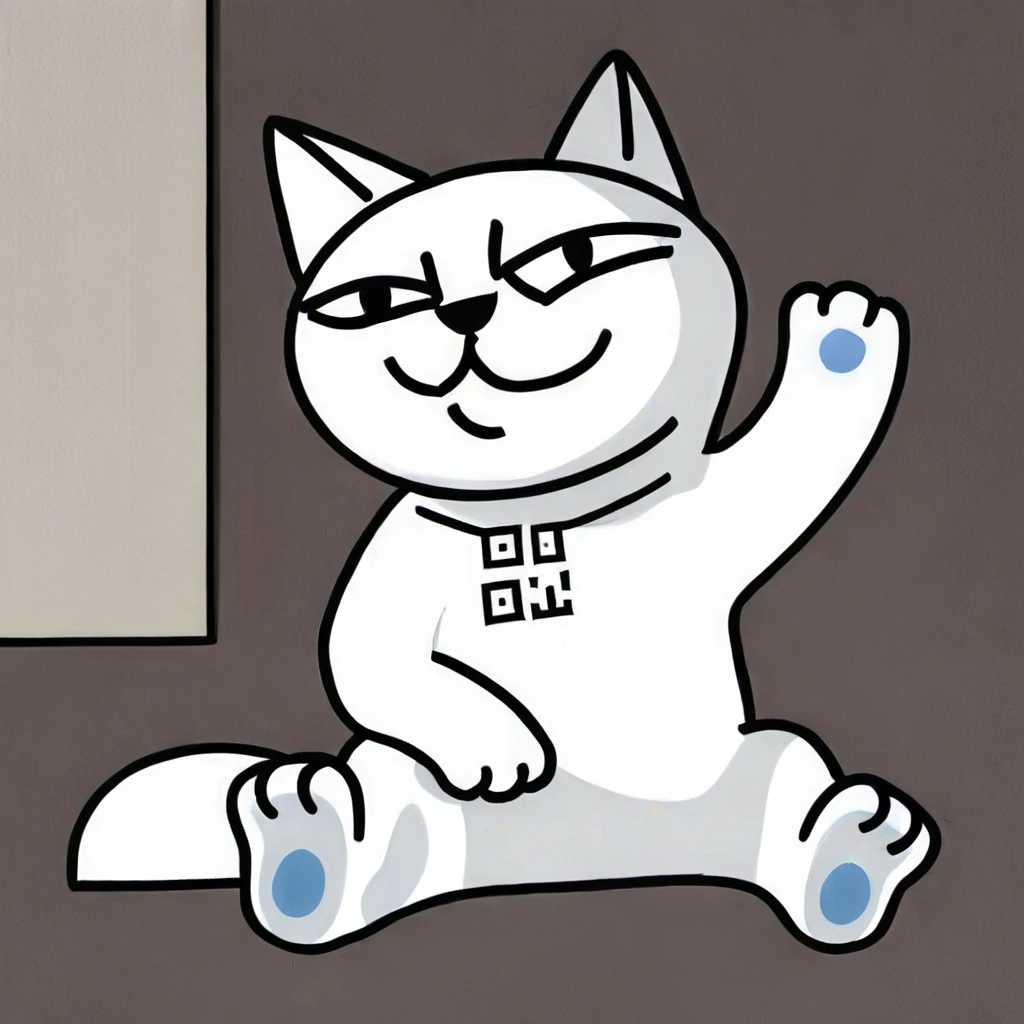 monocat, 1boy, solo, white fur, cat, black eyes, white sclera, cat tail, blue pawpads,