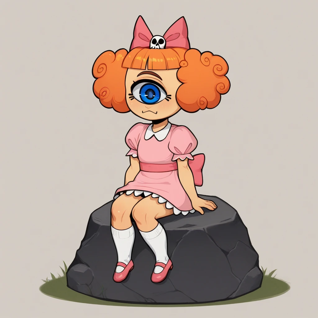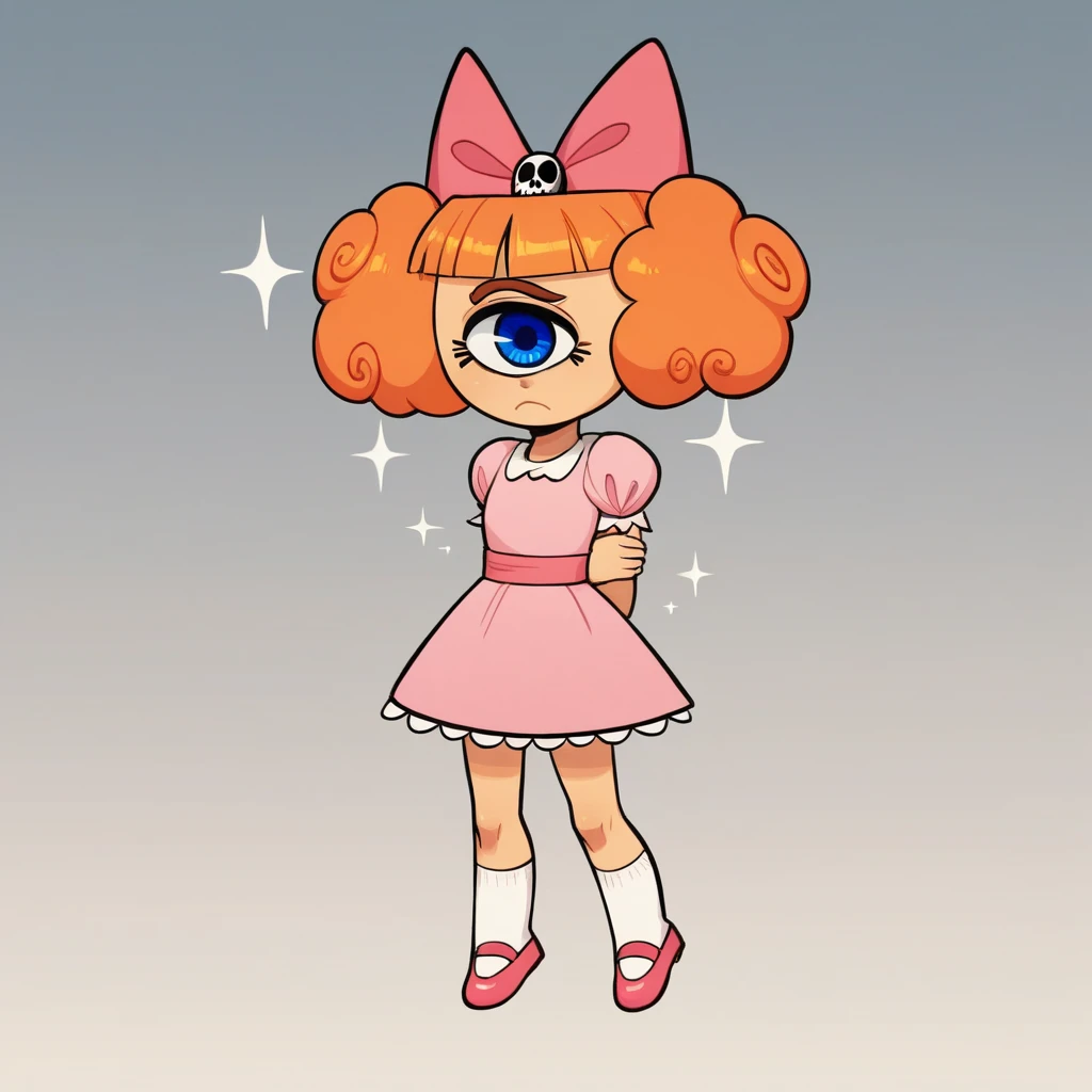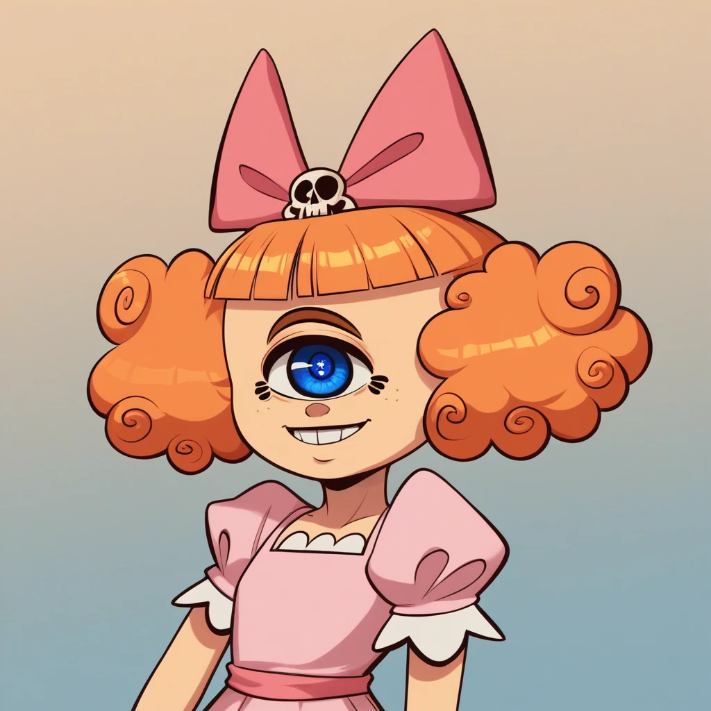 no humans, MeanJean, 1girl, solo, orange hair, unibrow, blue eye, one-eyed,
