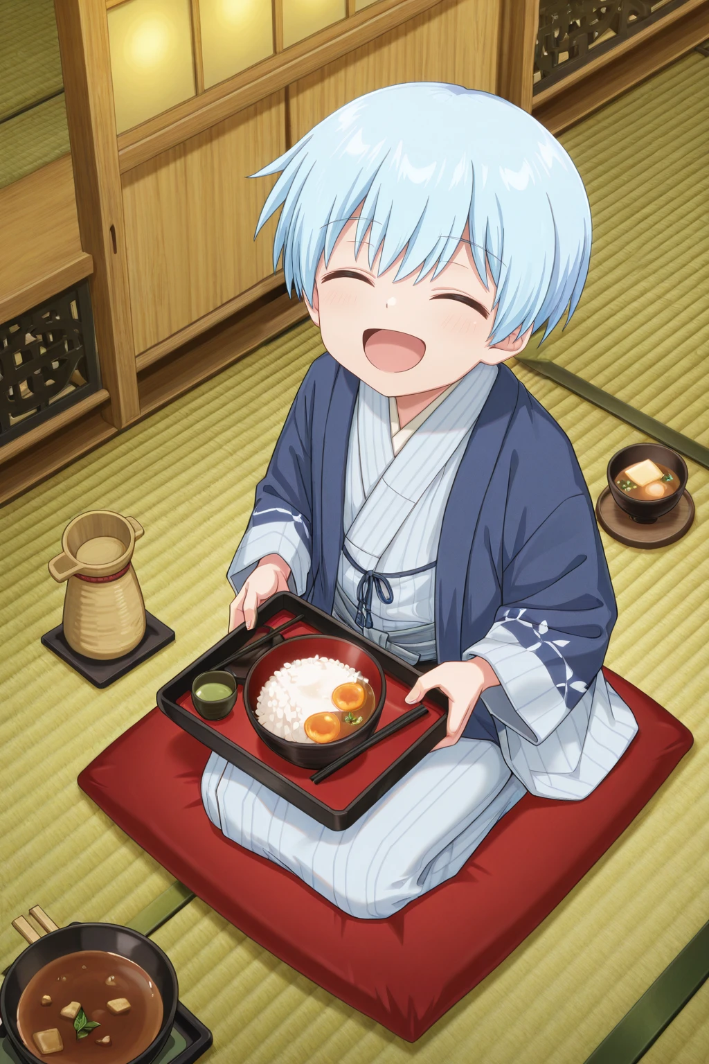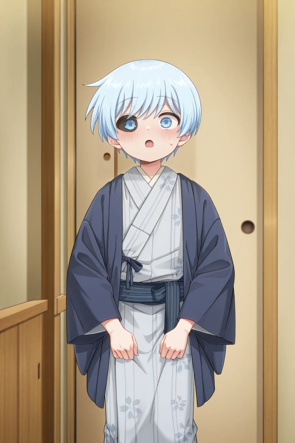 nanao yozakura, blue hair, blue eyes, mismatched sclera,