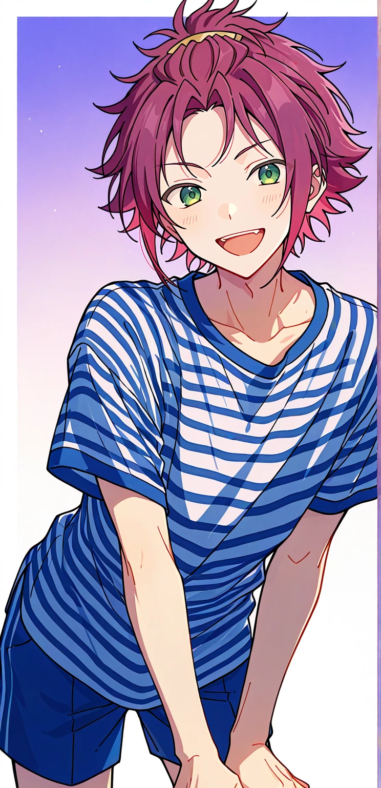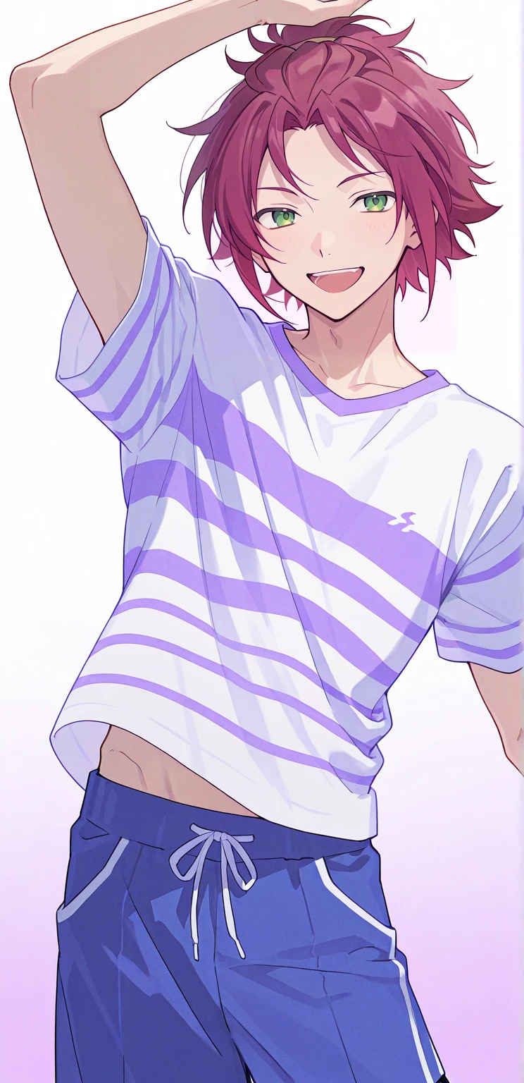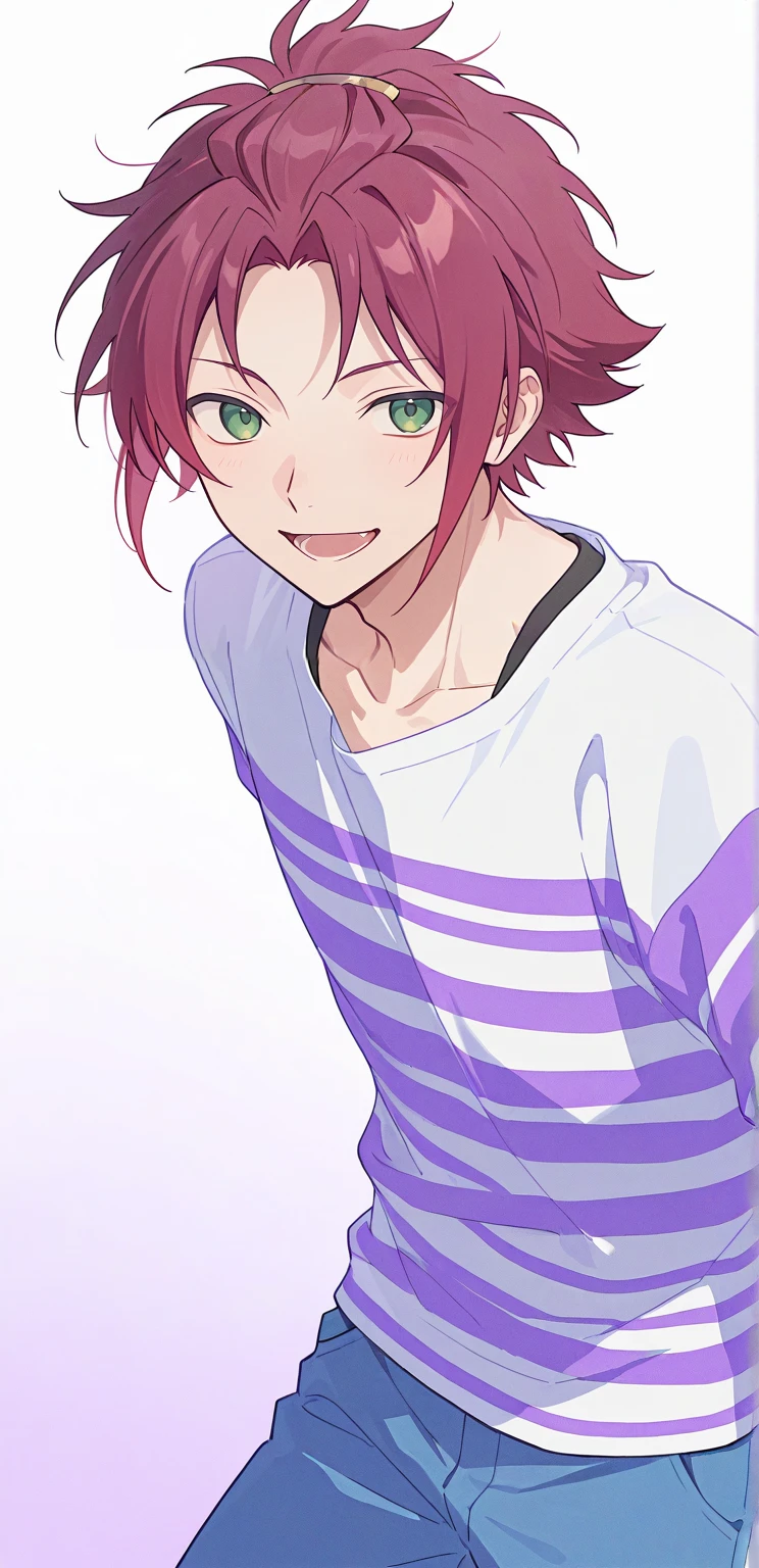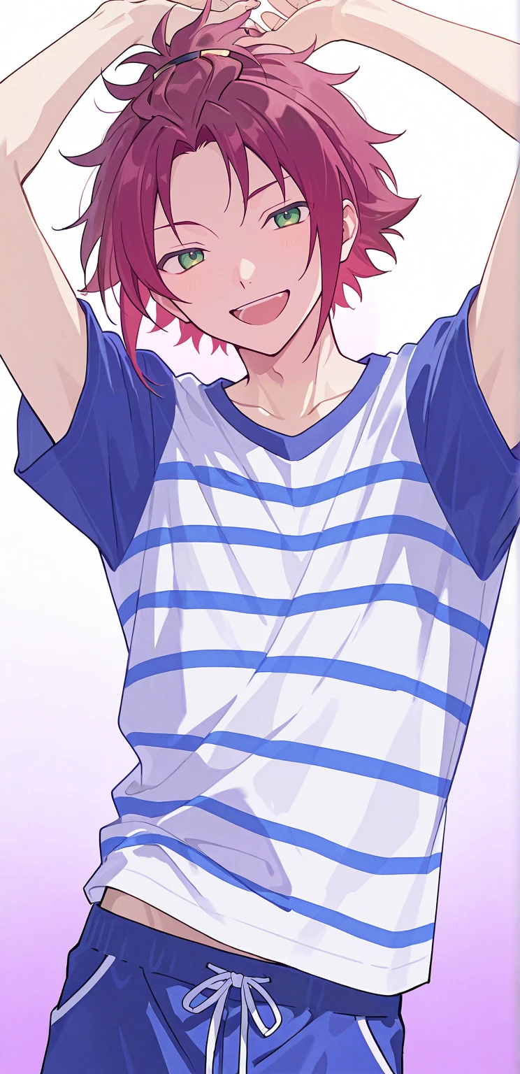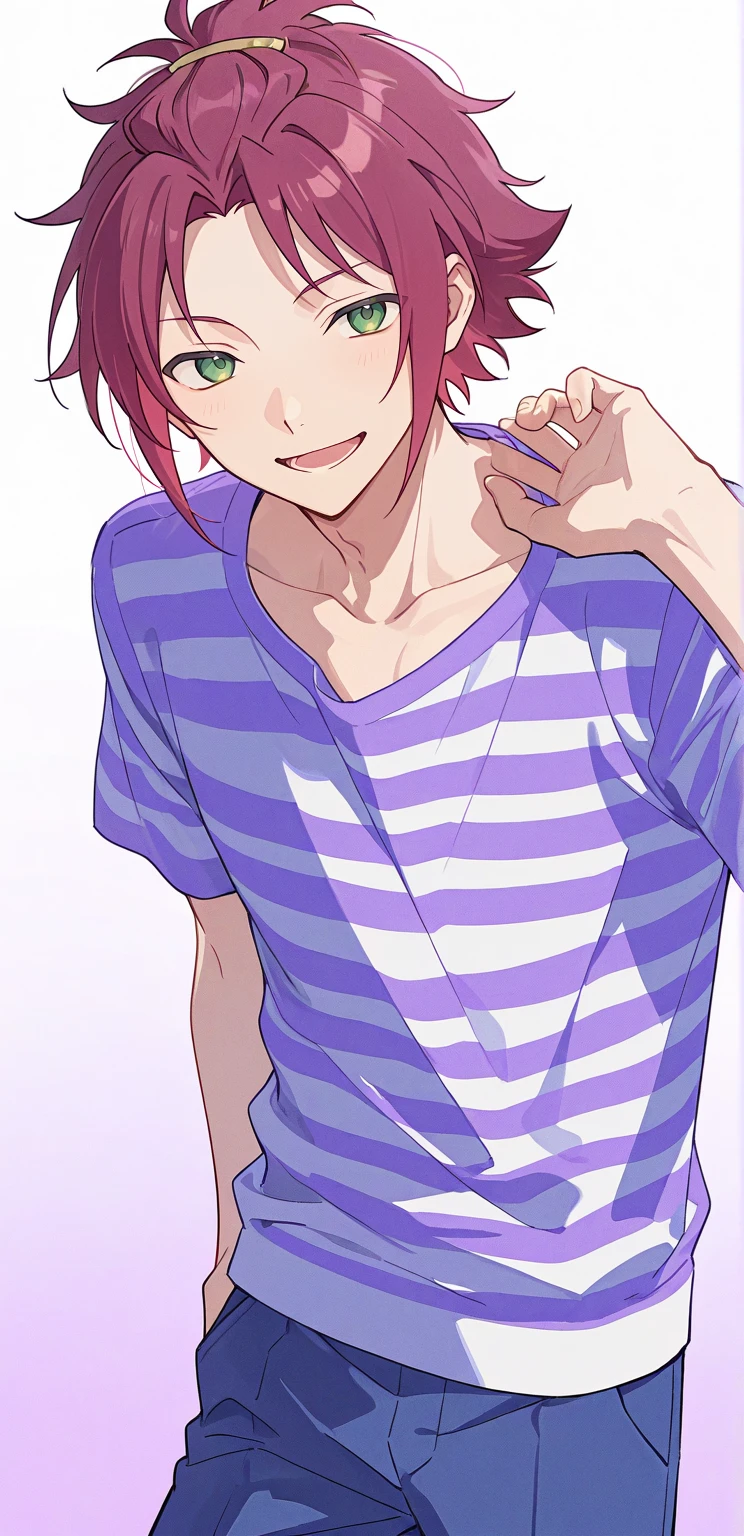 isara mao,red hair,green eyes,bangs pinned back