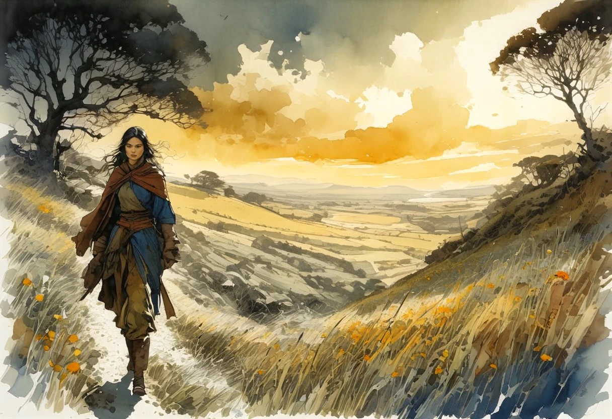 An amalgam of ink illustration, ligne claire, watercolor visuals and fantasy.