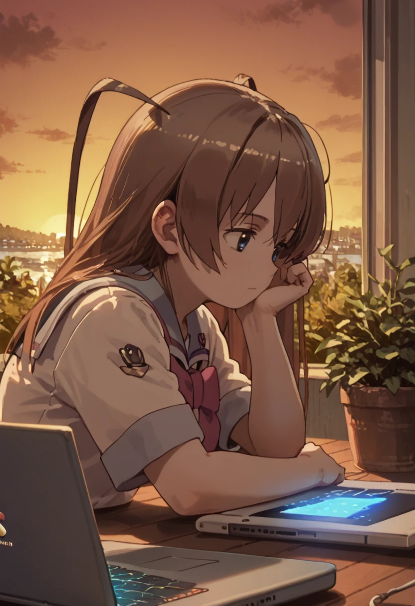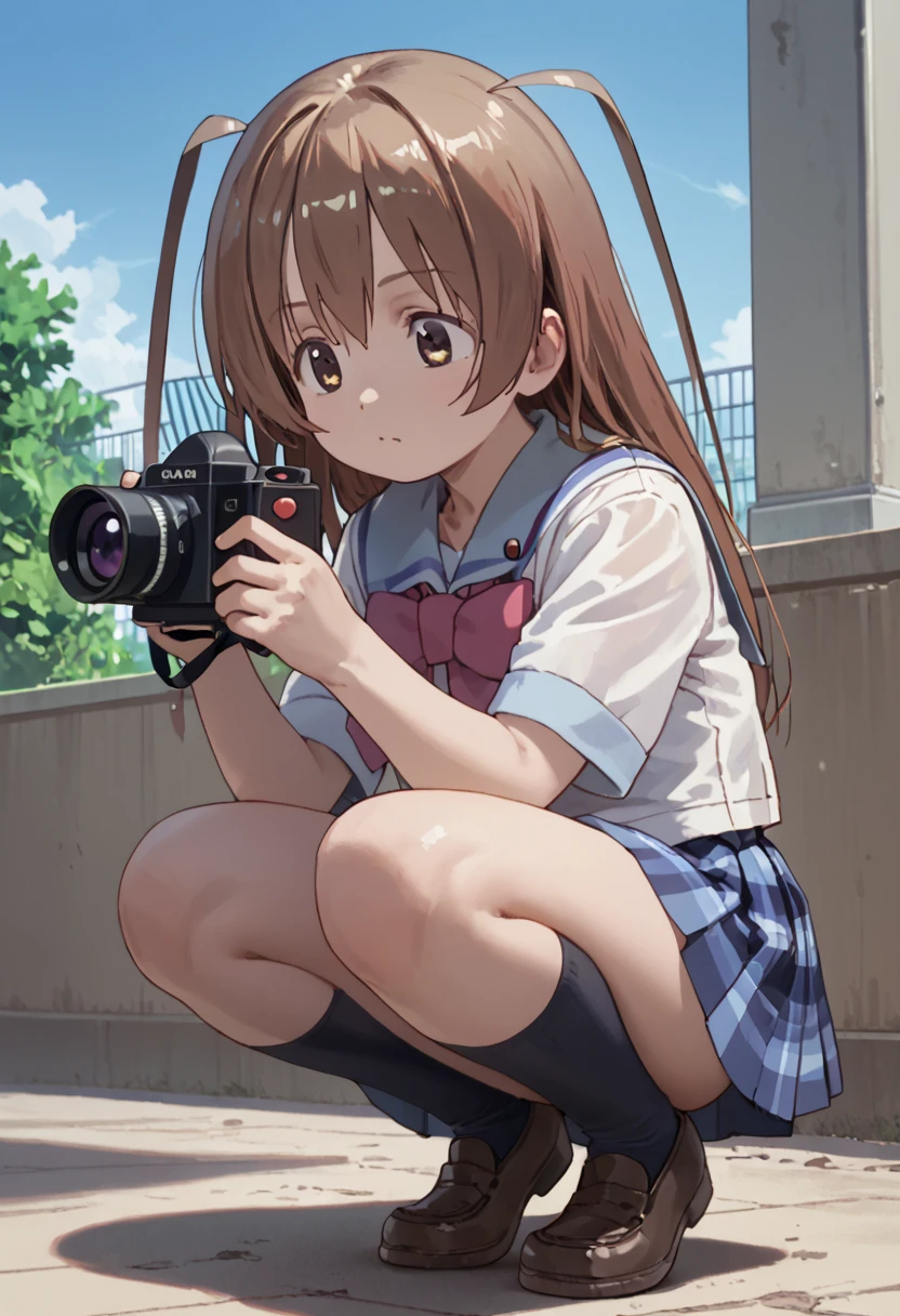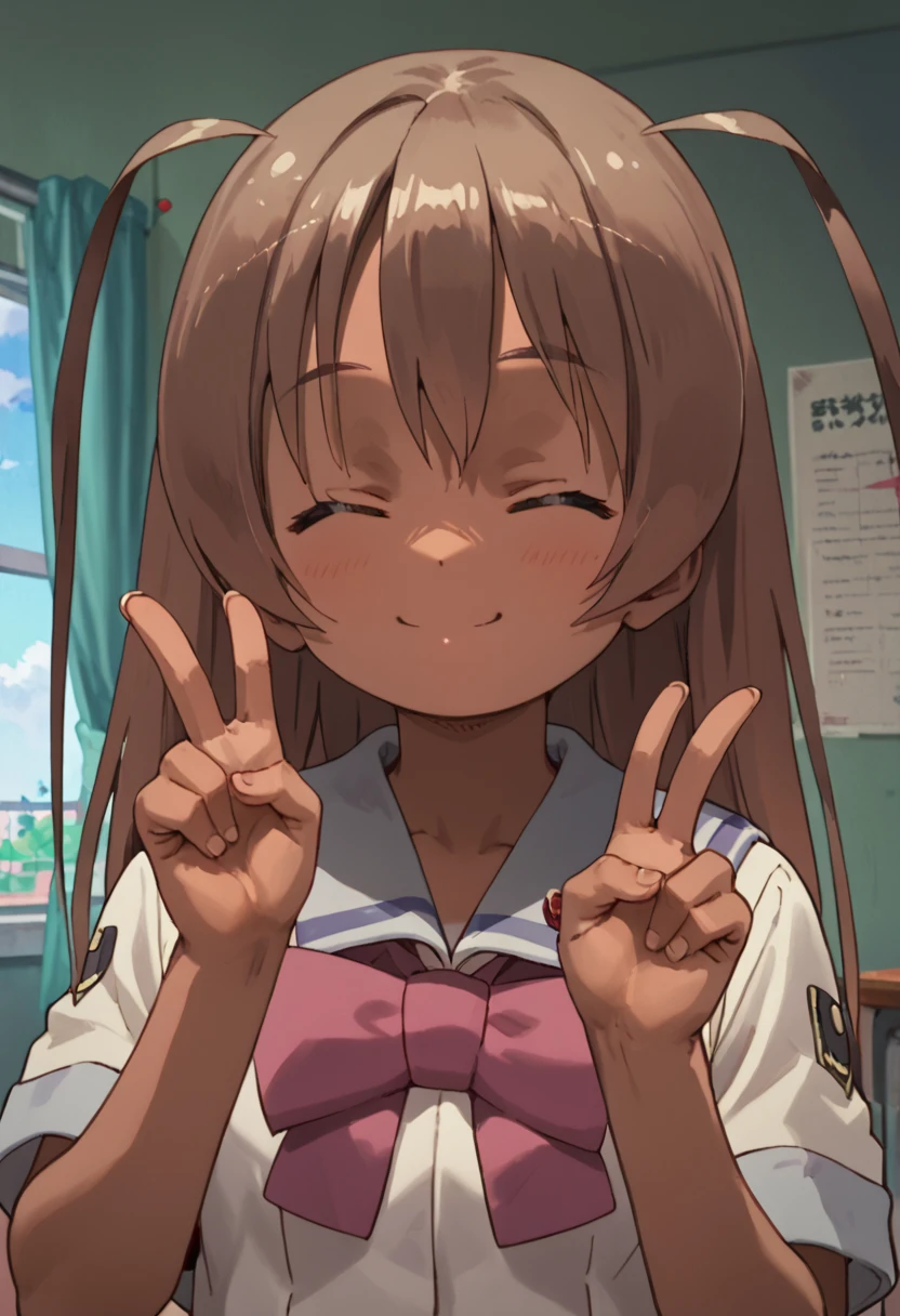 m0m0, brown hair, long hair, brown hair, antenna hair