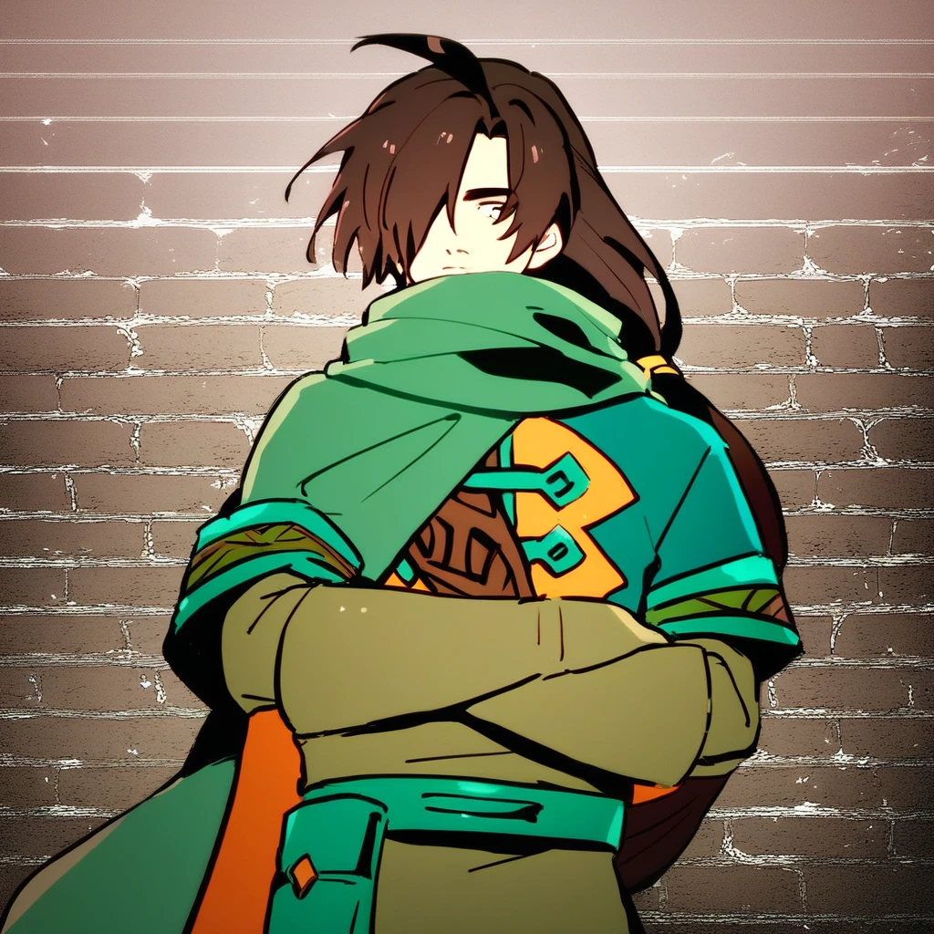 G_S_F_G, brown hair, long hair, long ponytail, ahoge