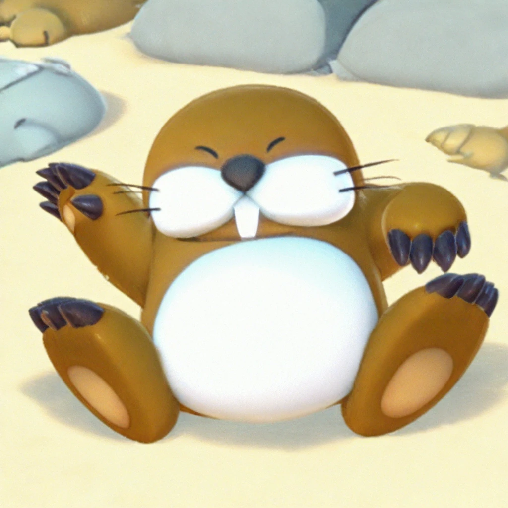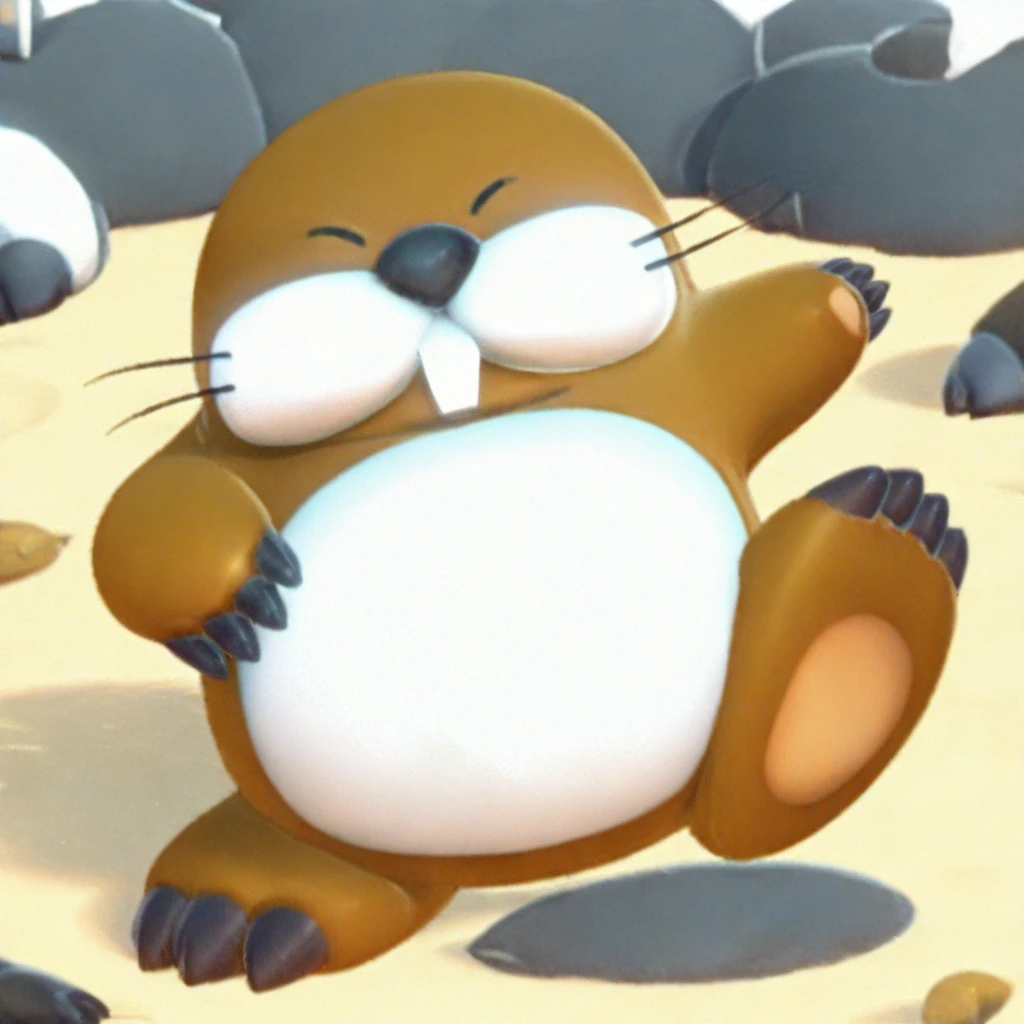 mole, white belly, whiskers, buck teeth, brown fur, black claws, paws, solo, no humans, closed eyes