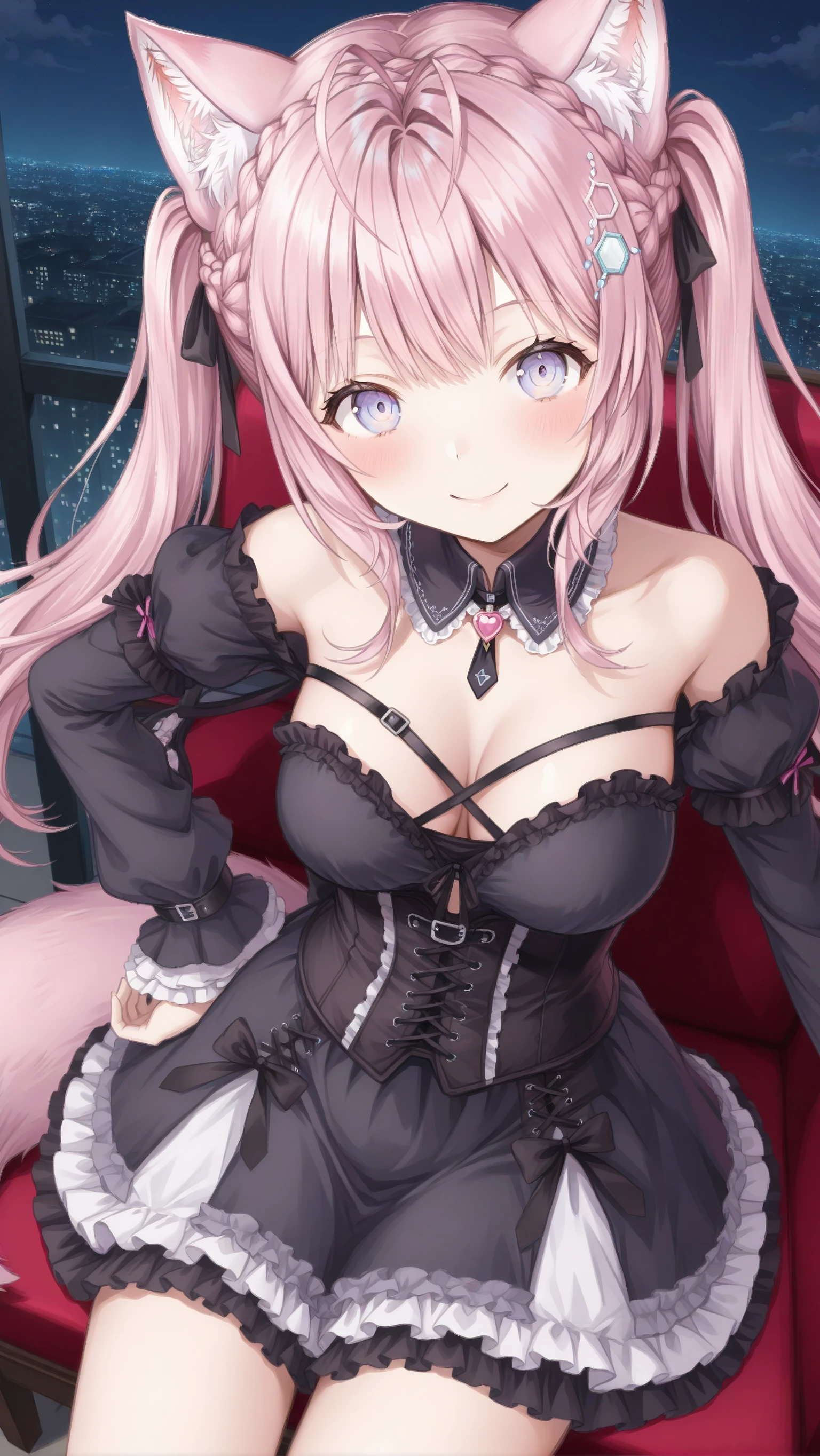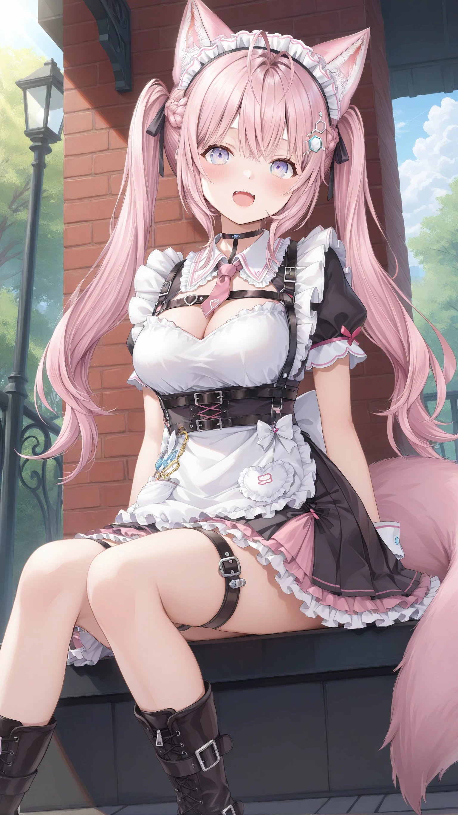 koyori_maid, hakui_koyori, alternate costume, maid, maid headdress, thigh strap, maid apron, frills, dress, chest strap, pink necktie, frilled dress, black choker, frilled skirt, harnessGothic Style