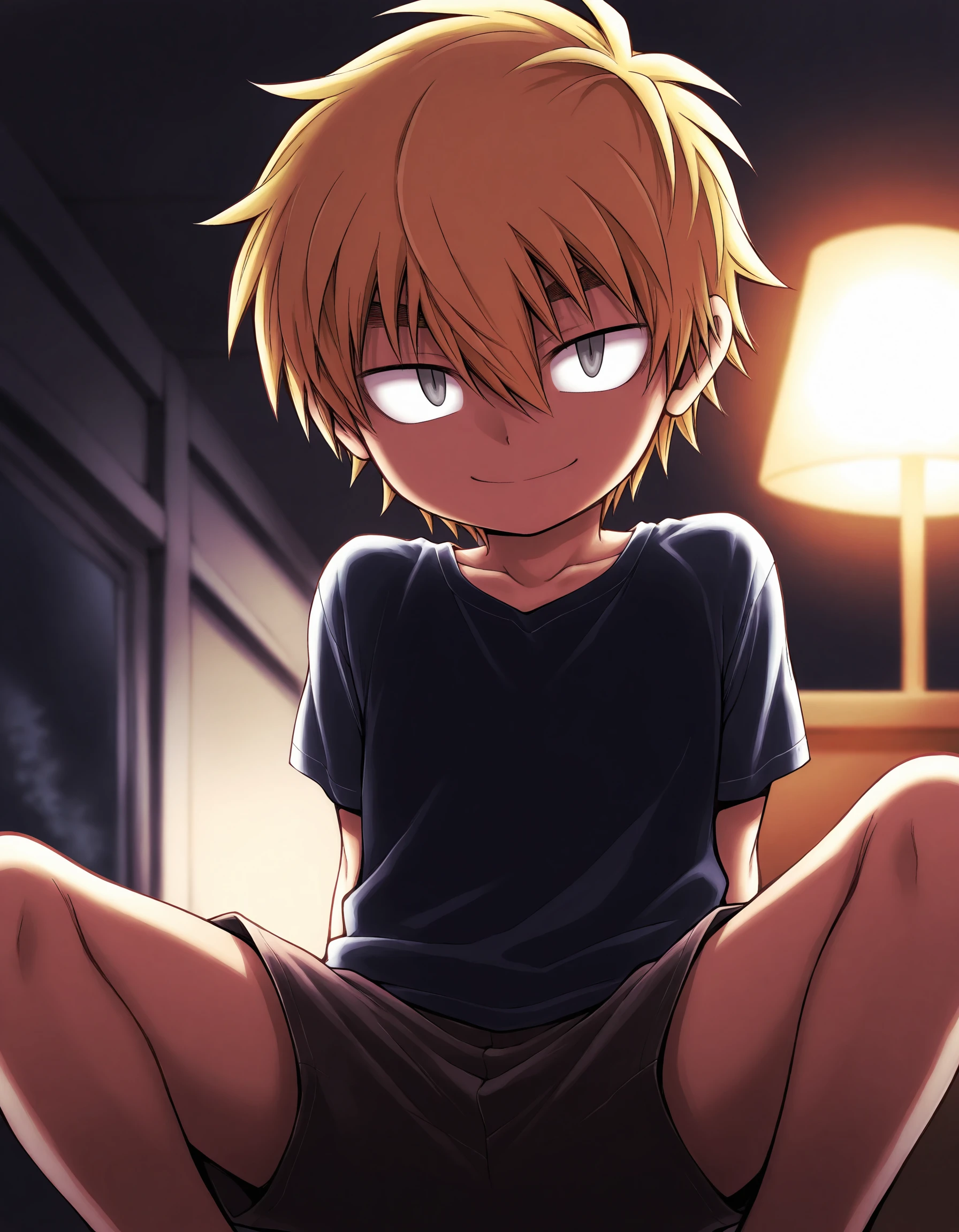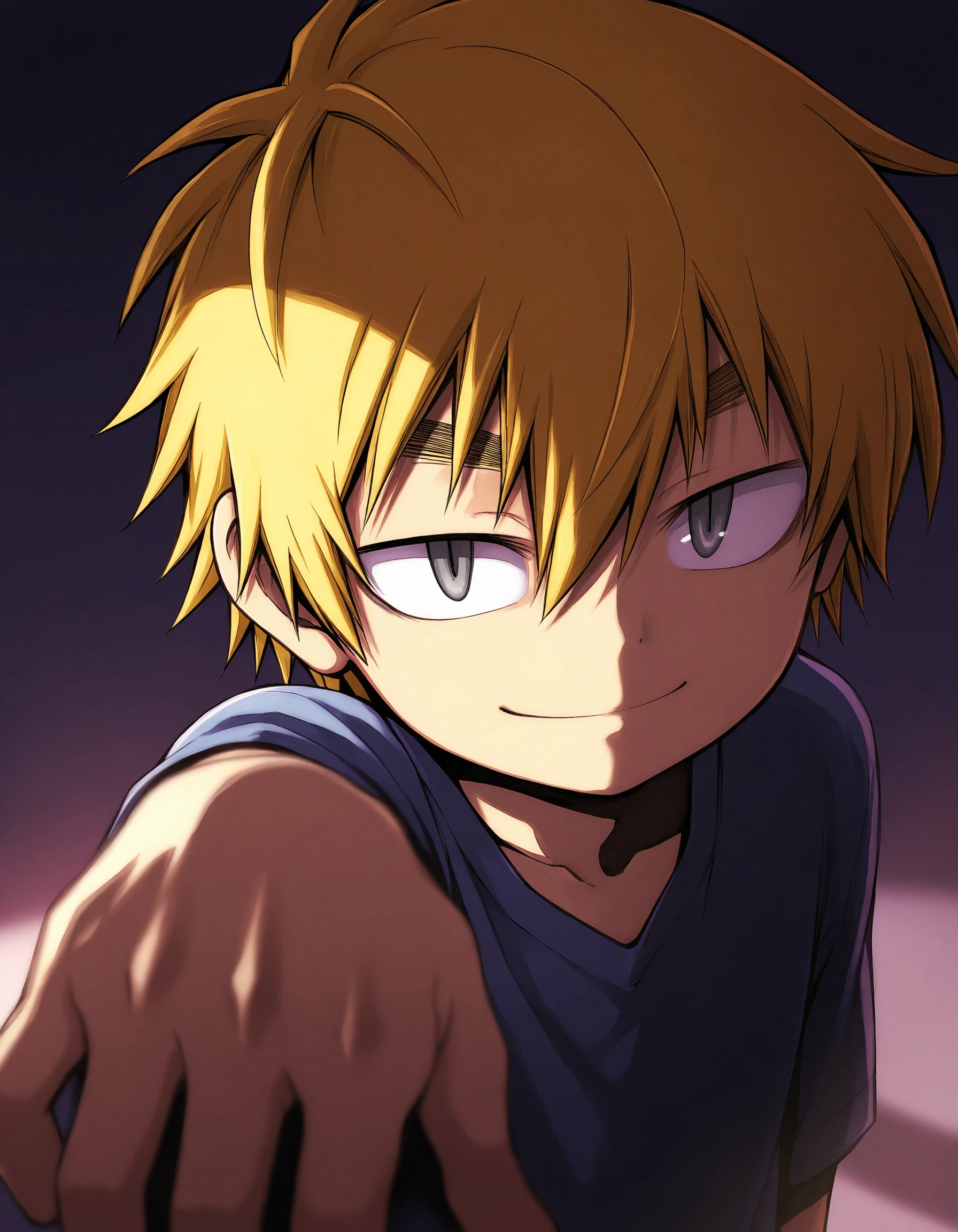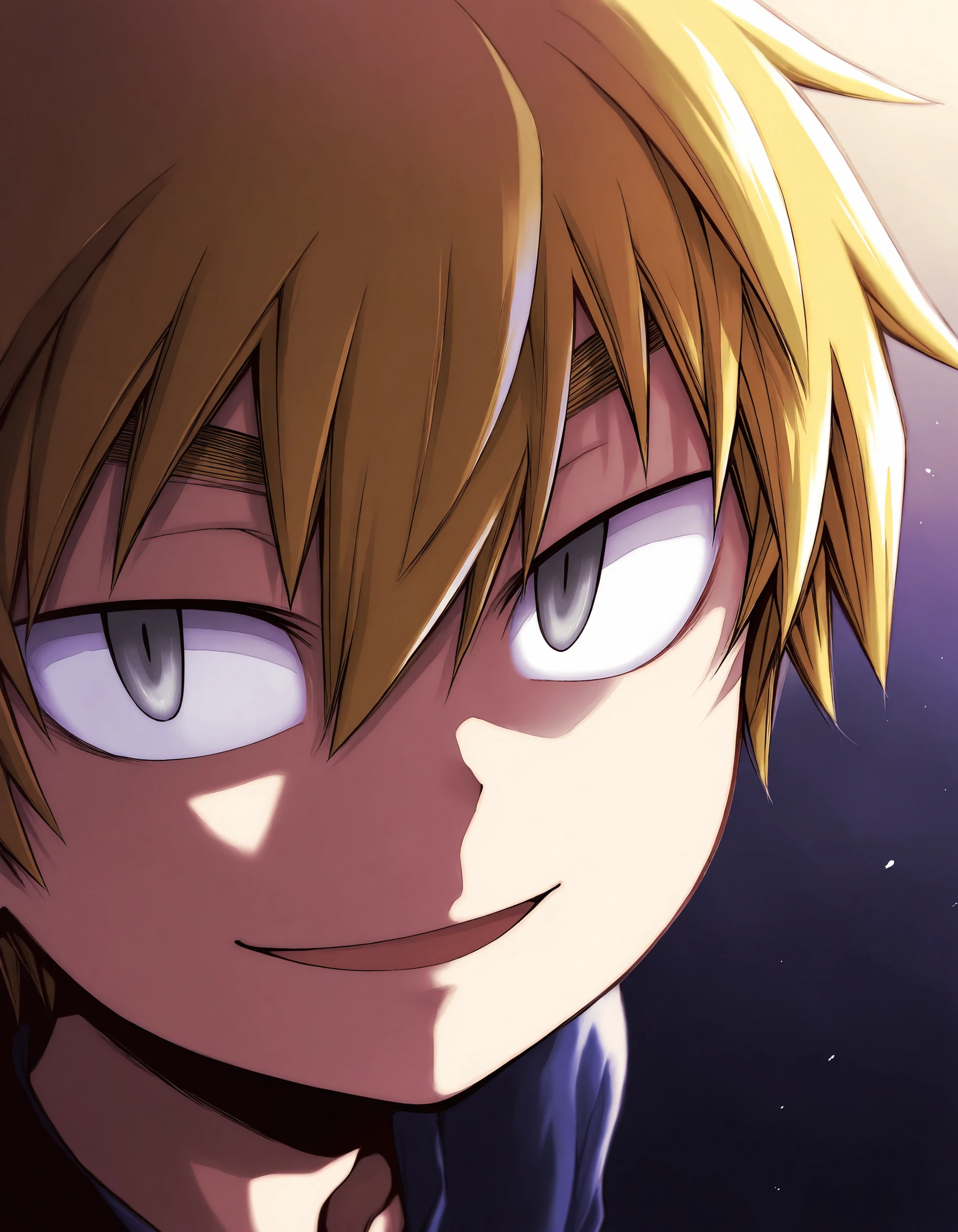 Trigger Words :yota nakamura, 1boy, male focus, blonde hair, short hair, grey eyes, thick eyebrows