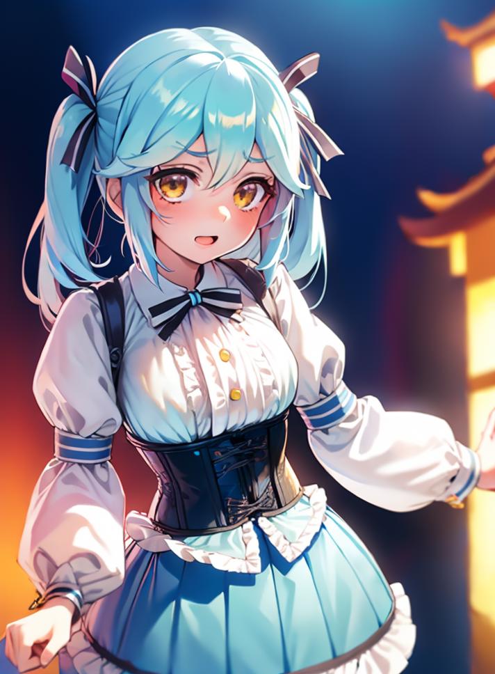 Change outfit and background (Add parentheses): (your background:1.1),(Your Outfit:1.2),(A pose:1)
