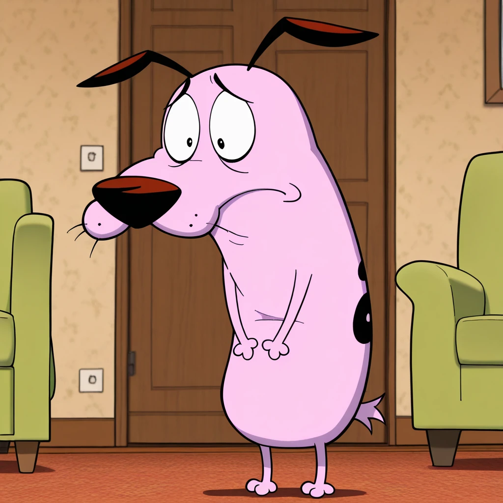 1boy, male, furry male, semi-anthro, solo, dog, pink fur, black eyes, black nose, whiskers, long ears, short tail, black spots on back