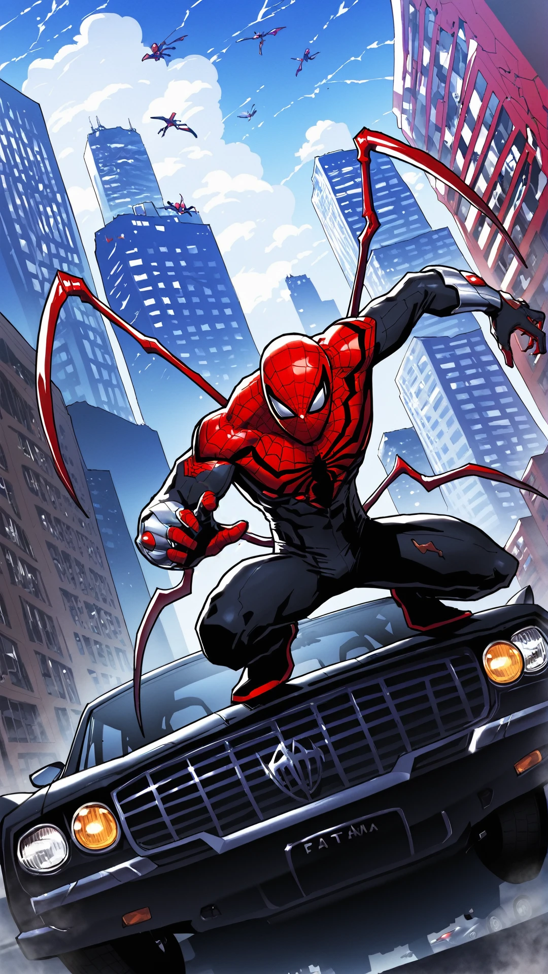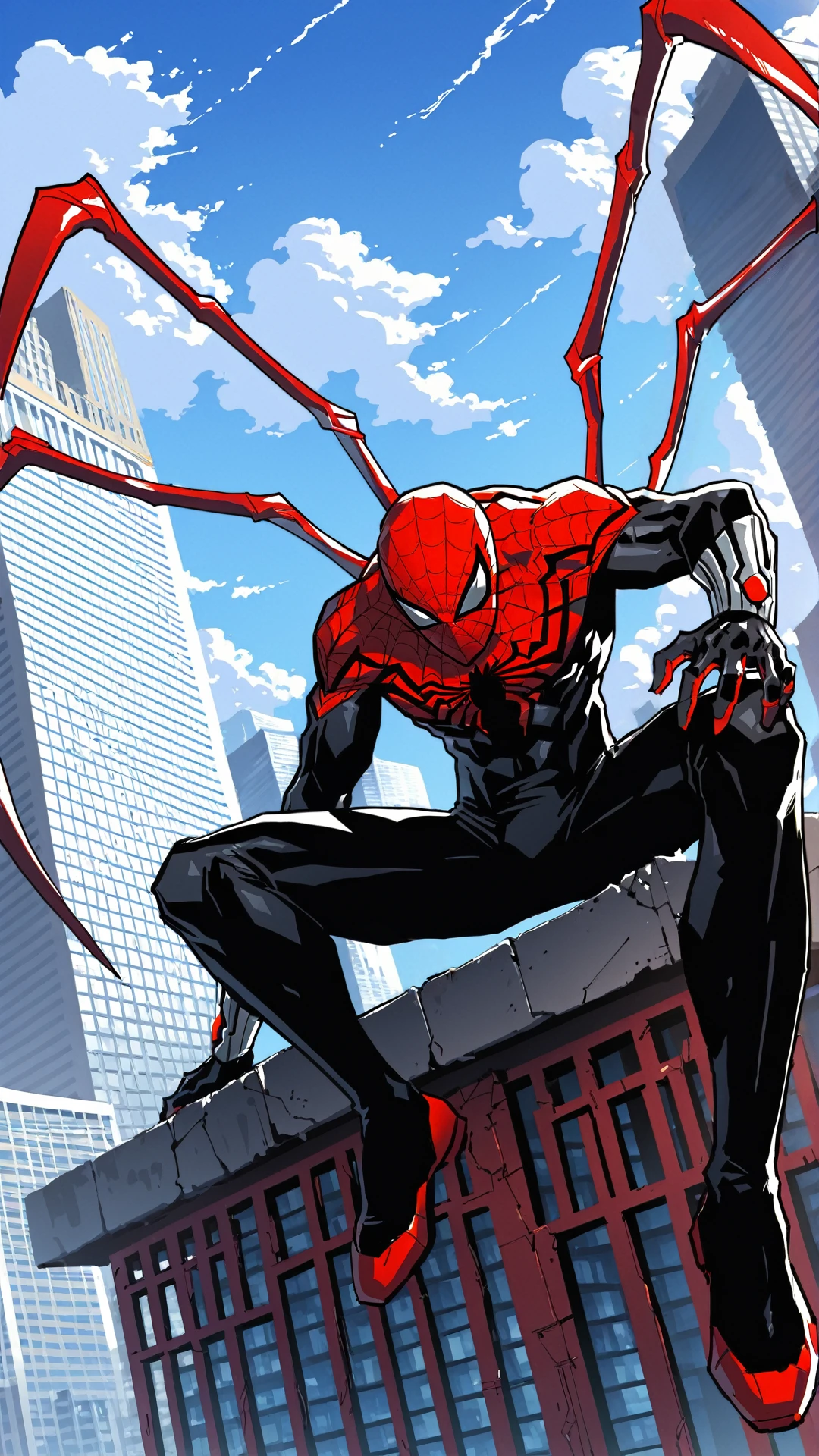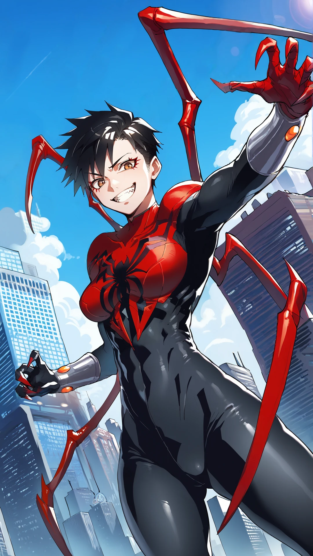The Superior Spider-Man from comic books, when Otto was at helm. use 0.8 -1 lora weights and add weight for keywords if the not showing Keywords: supspr, four red metal legs, silver bracelets, sharp fingers, spider-man