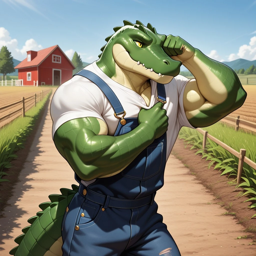 Crcdlnil, anthro, Crocodilian, green skin, yellow sclera, slit pupils
