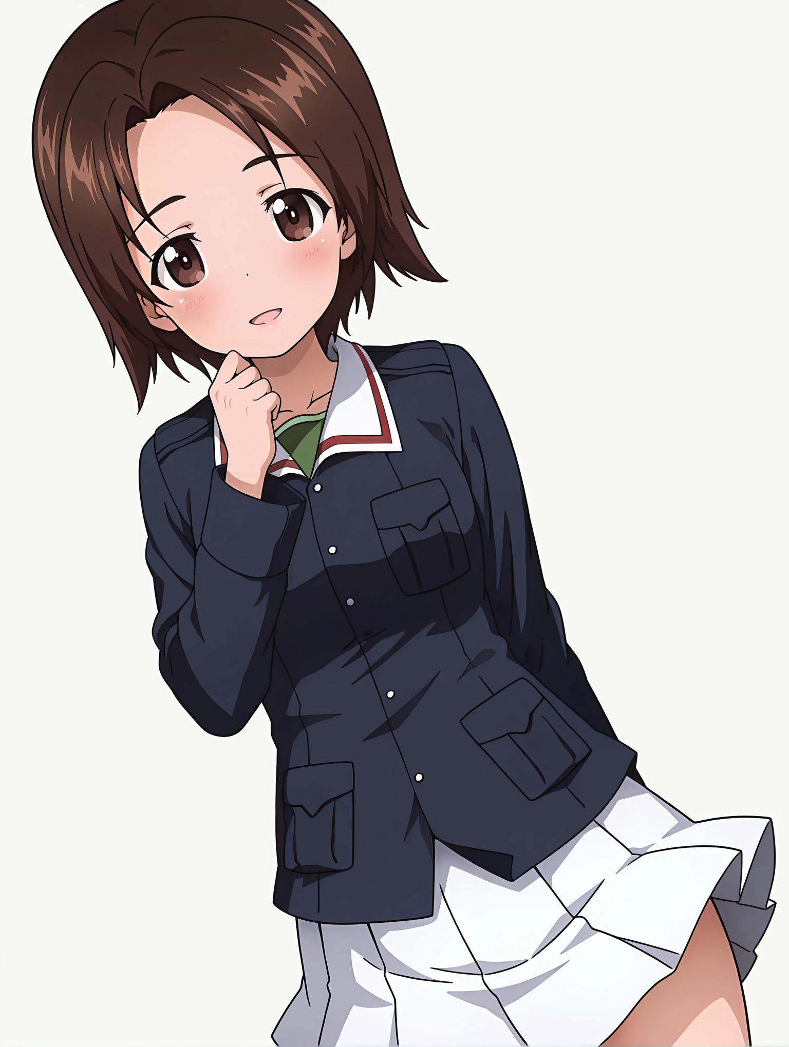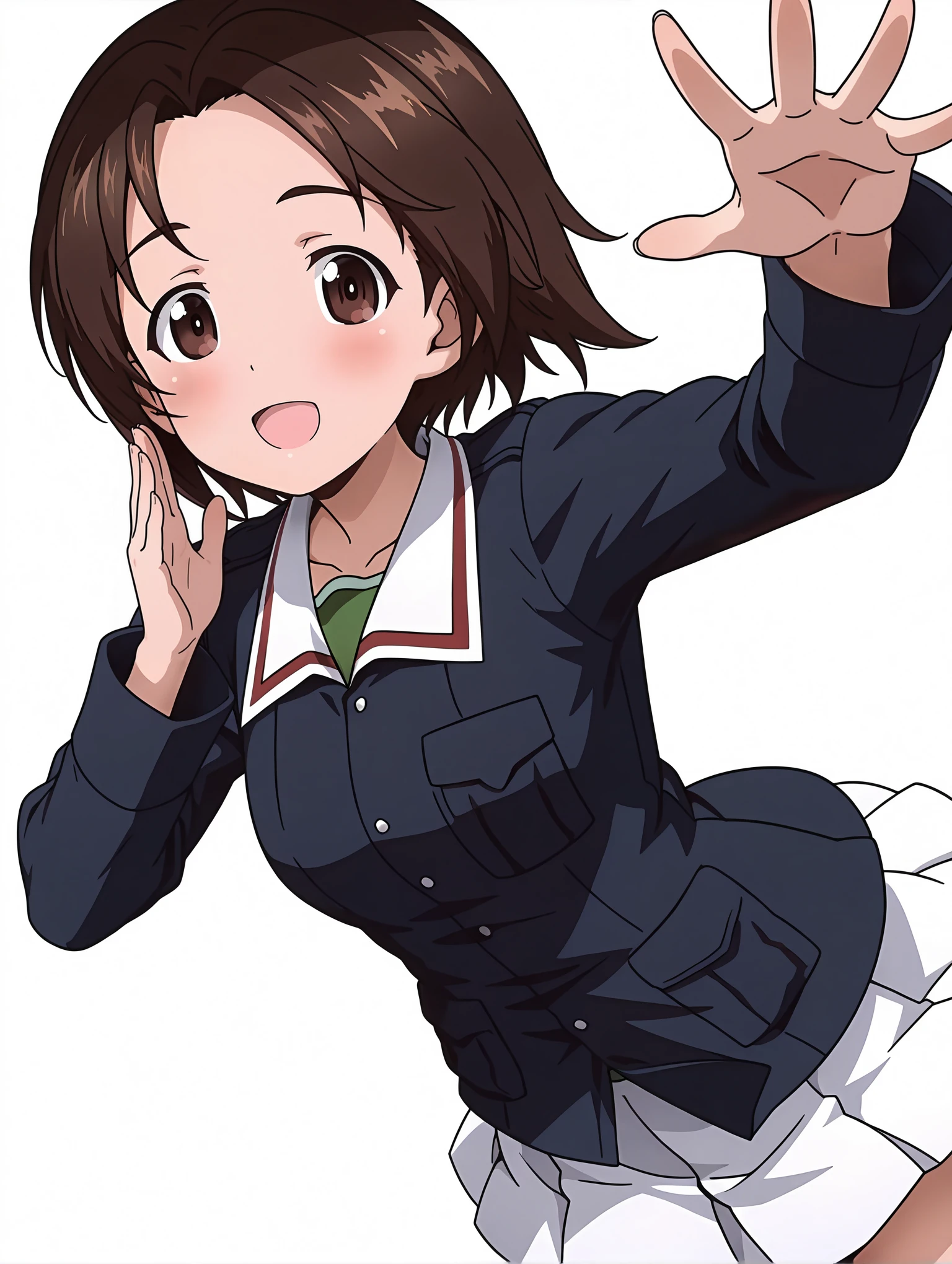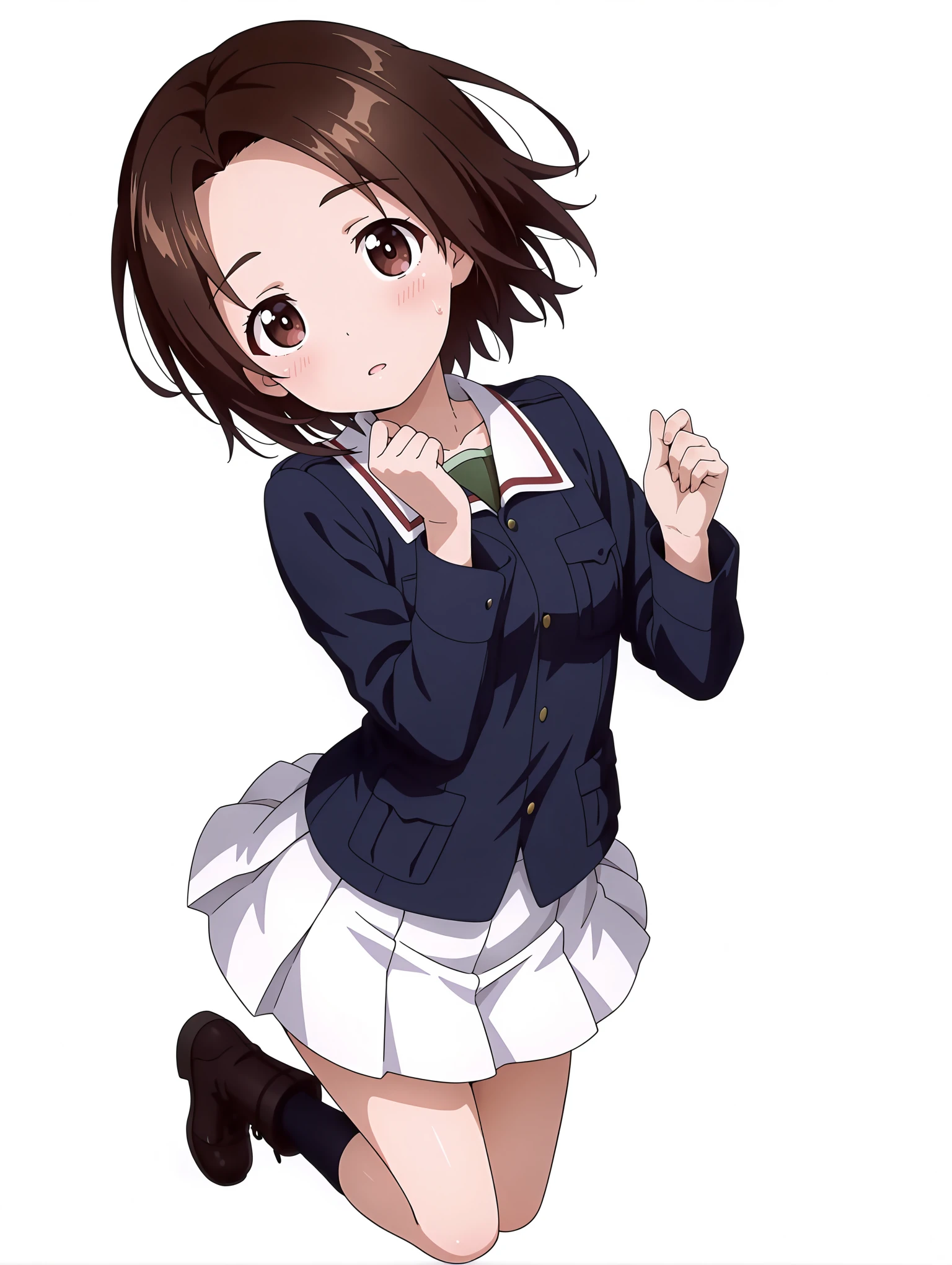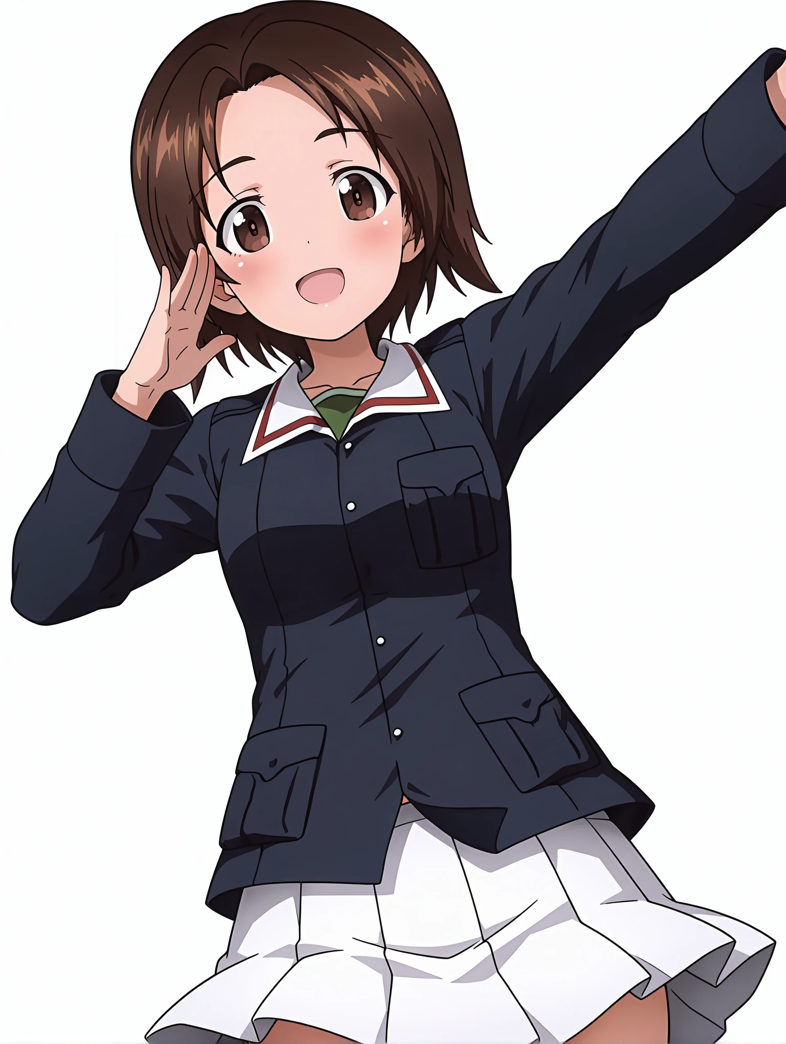 p_gs,jacket,long sleeves,ooarai military uniform,white pleated skirt,black socks,boots,