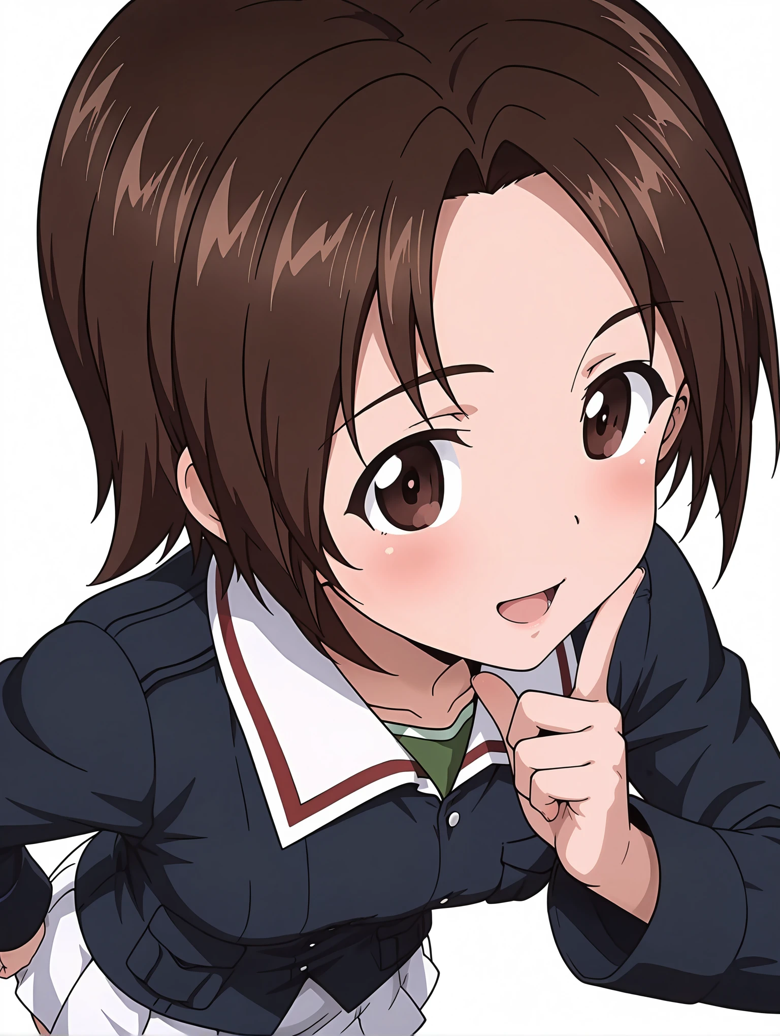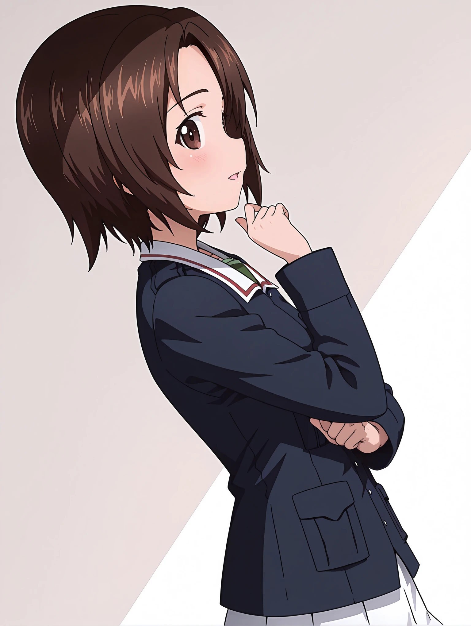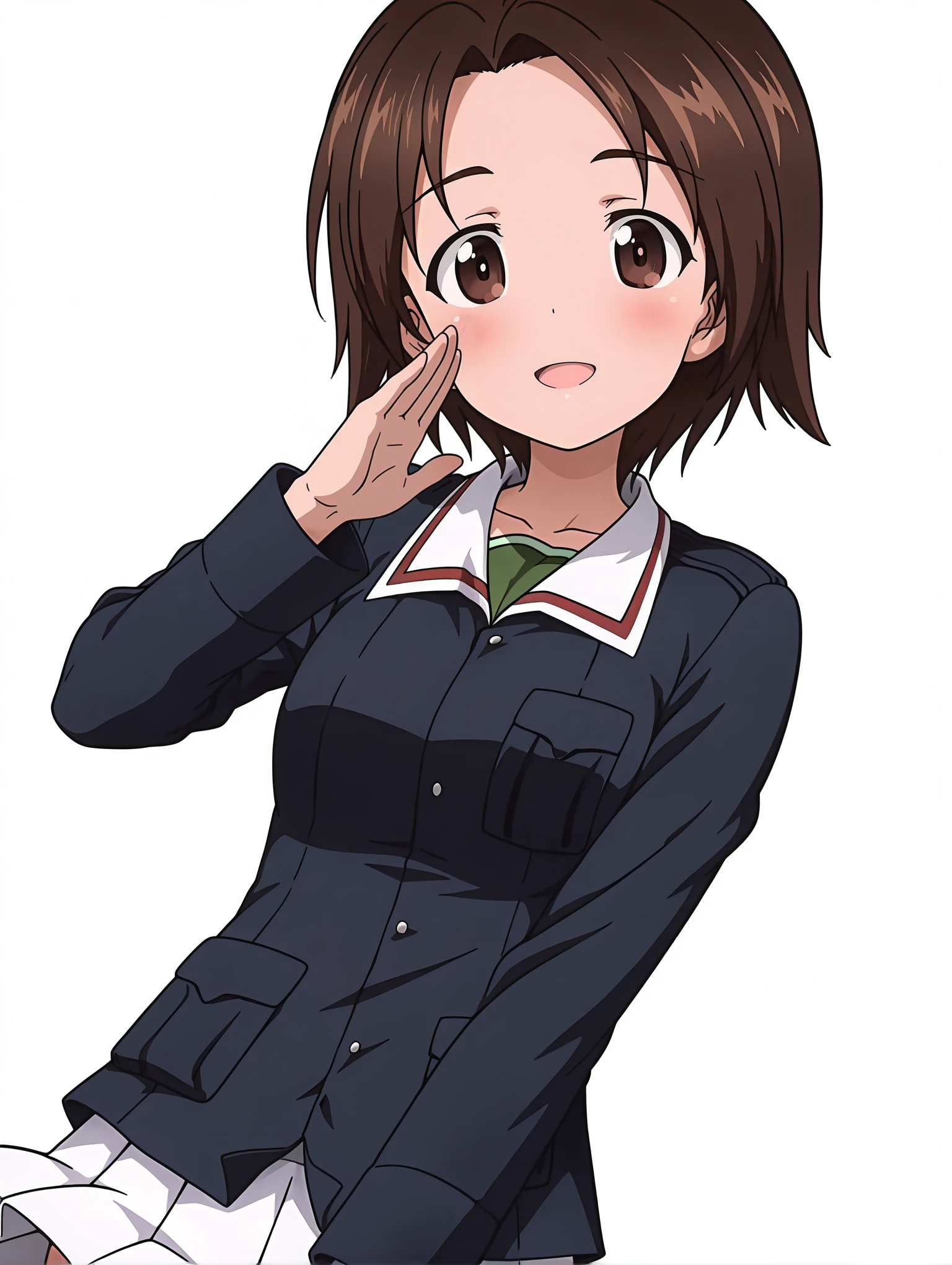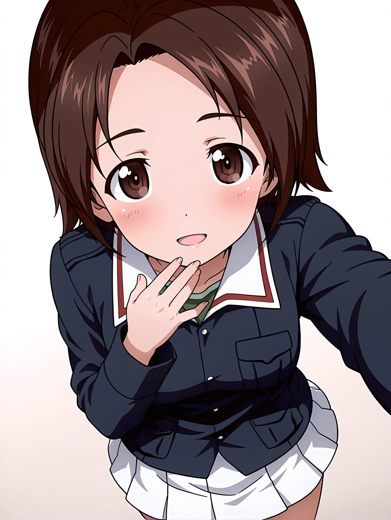 p_gs,jacket,long sleeves,ooarai military uniform,white pleated skirt,black socks,boots,