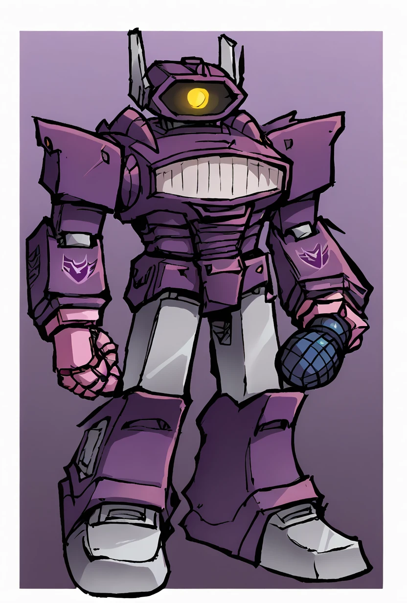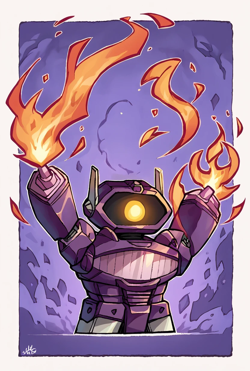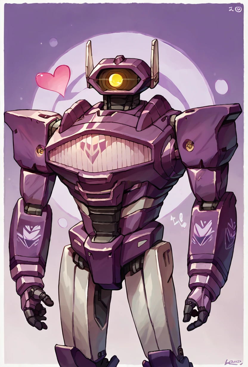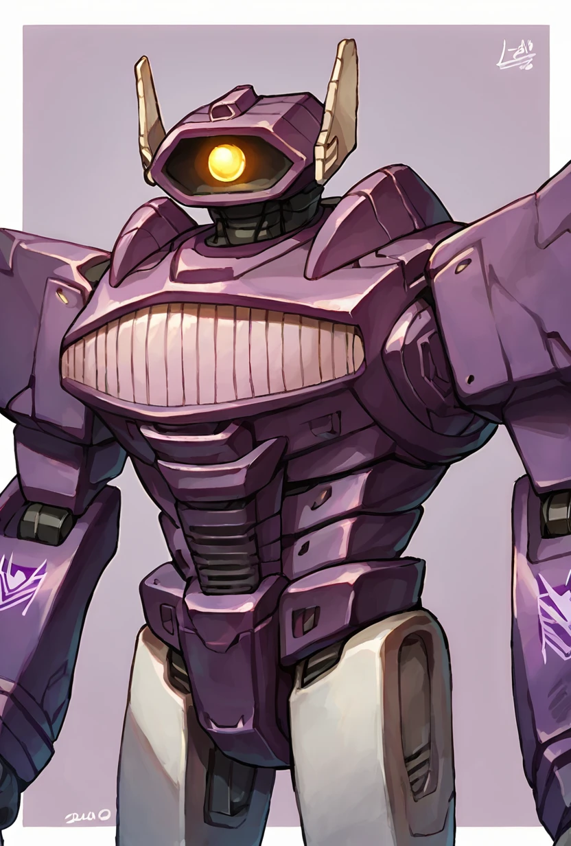shockwave, robot,purple mecha, yellow eyes, glowing, one-eyed,