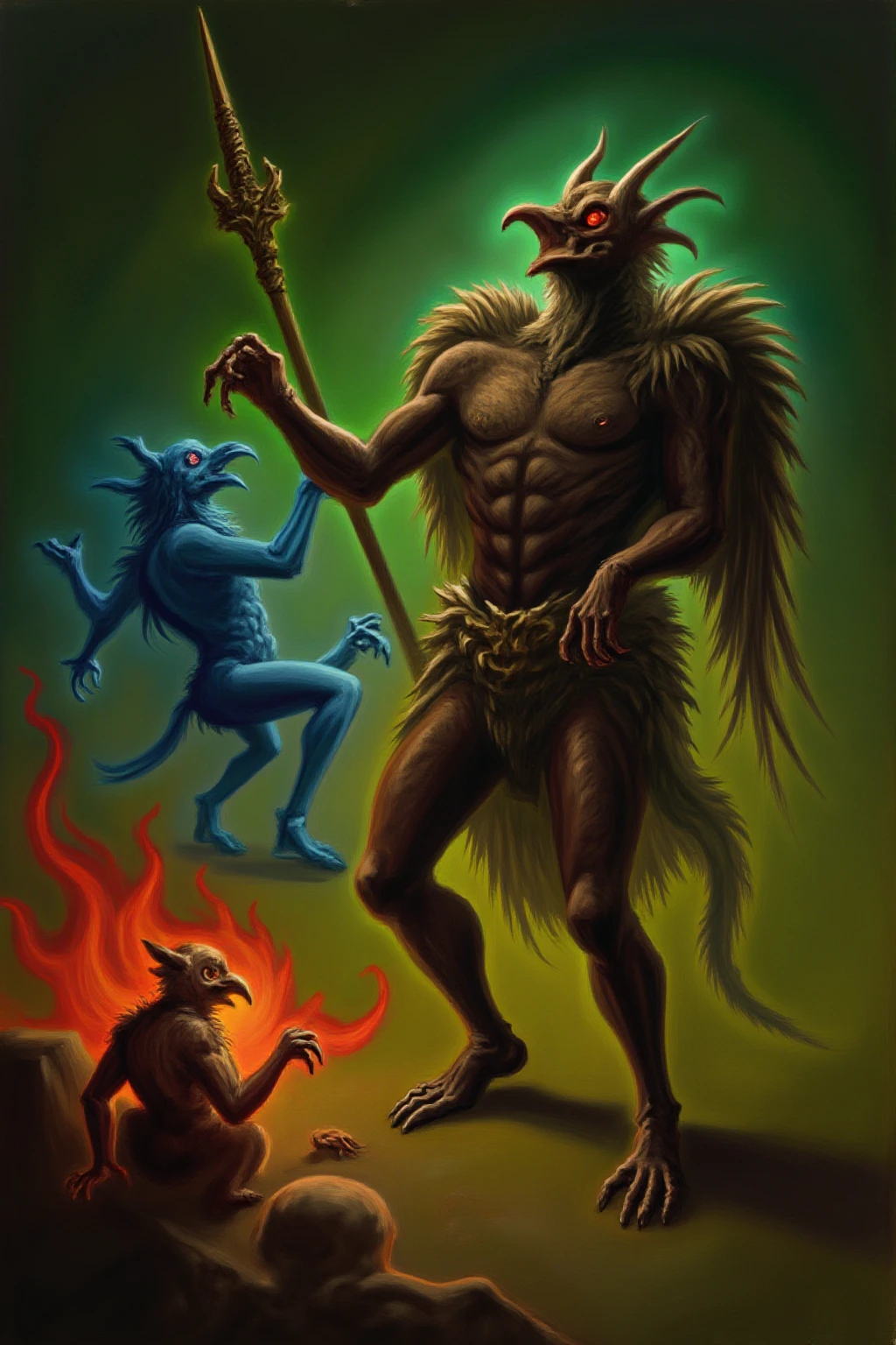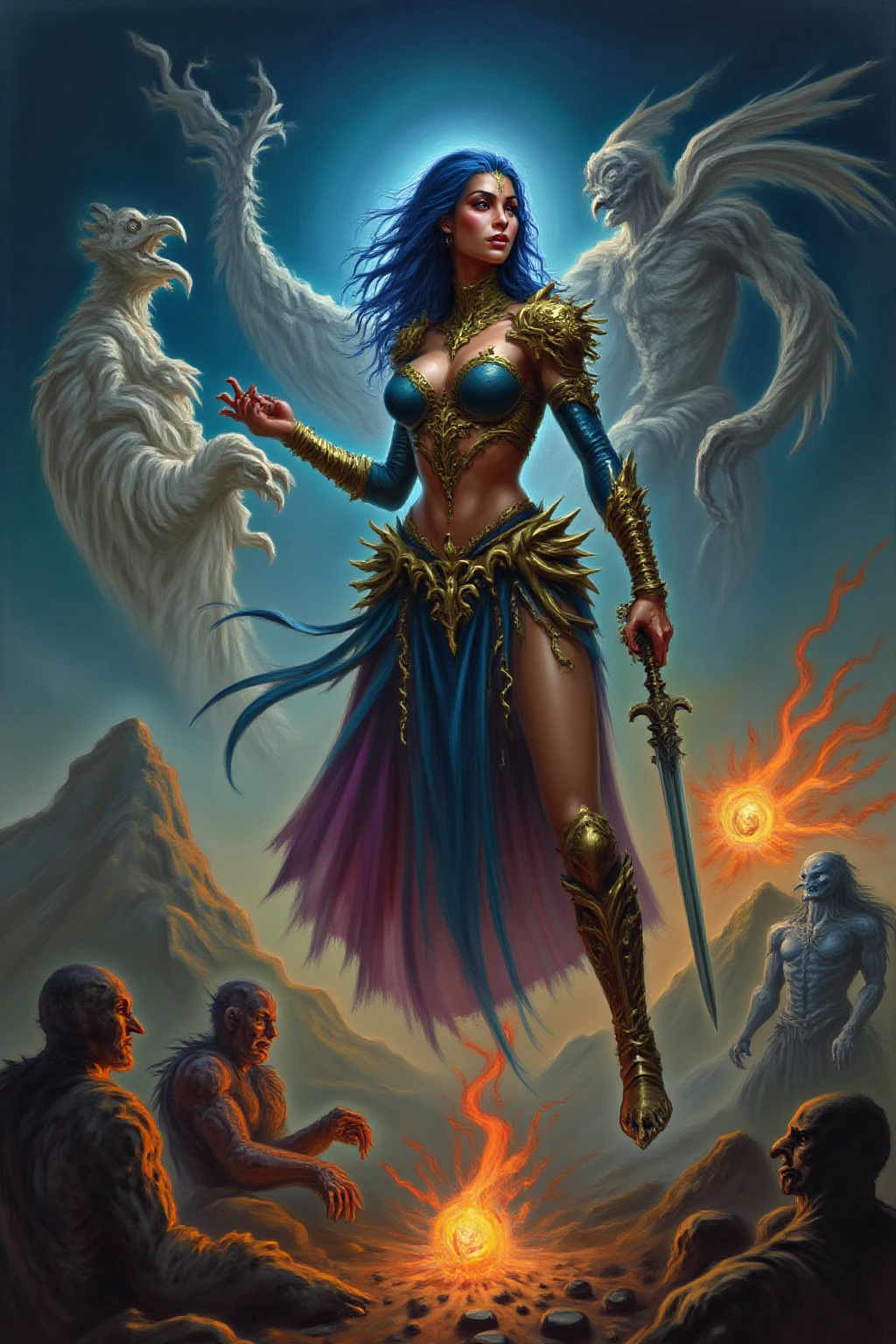 The image is a digital illustration of a group of six mythical creatures, all of which appear to be dragons. The creatures are arranged in a line, with their wings spread wide and their mouths open, as if they are roaring or roaring. The background is a fiery orange and pink sky with a full moon in the top right corner. The clouds are swirling around the creatures, creating a sense of movement and energy. The colors are vibrant and the overall mood of the image is dramatic and powerful.