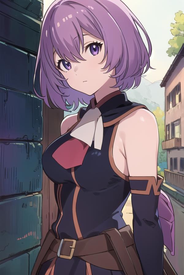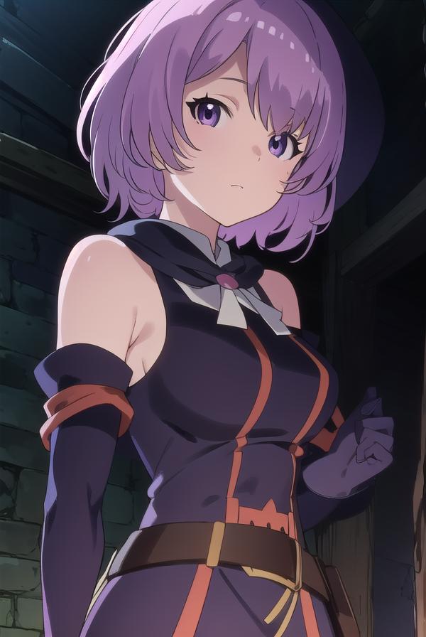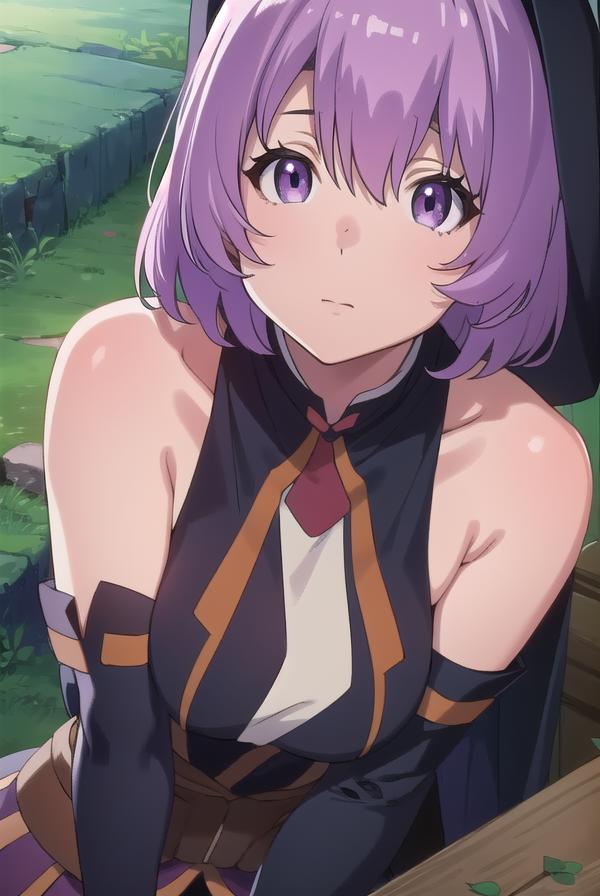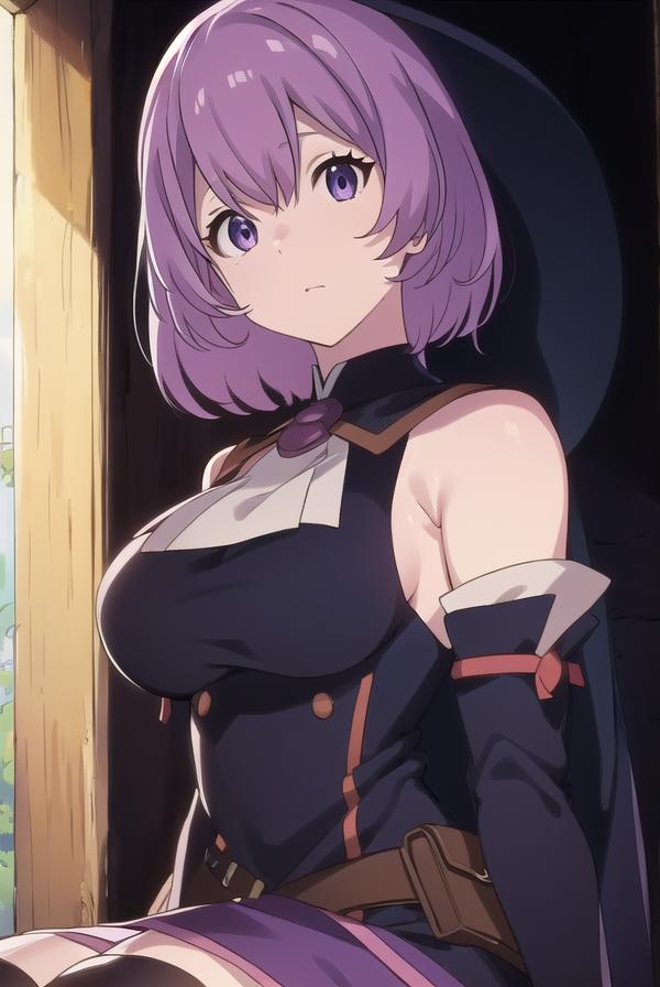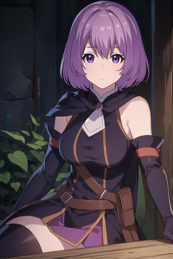 shihoru, short hair, purple hair, (purple eyes:1.1),
