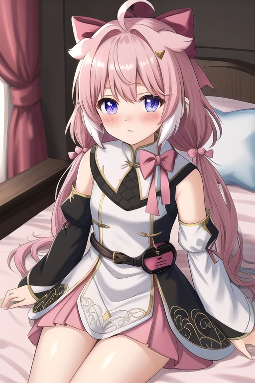 encore, pink hair, low-tied long hair, hair intakes, tiwntails, ahoge, bow, hair bow, pink bow, hair ornamenttransiformation :