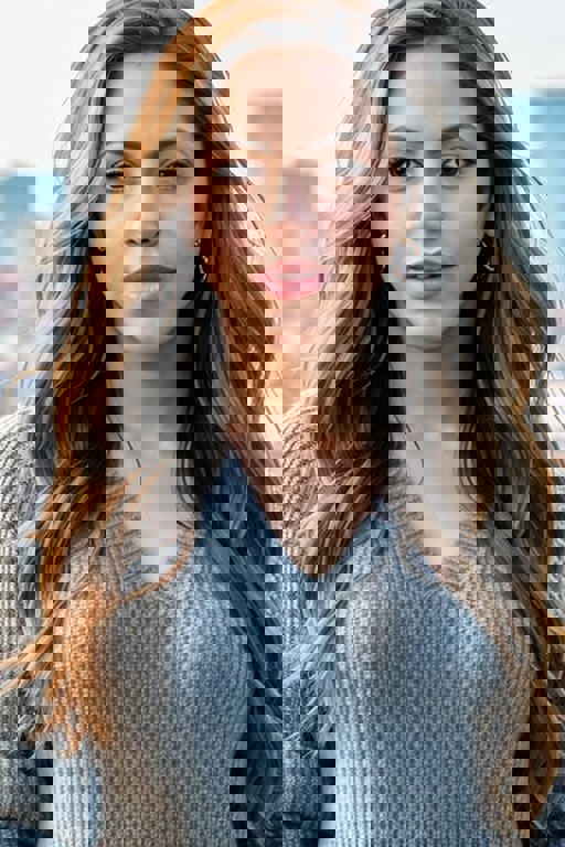 RAW photo, a close up portrait photo of 26 y.o woman in wastelander clothes, long haircut, pale skin, slim body, background is city ruins, (high detailed skin:1.2), 8k uhd, dslr, soft lighting, high quality, film grain, Fujifilm XT3