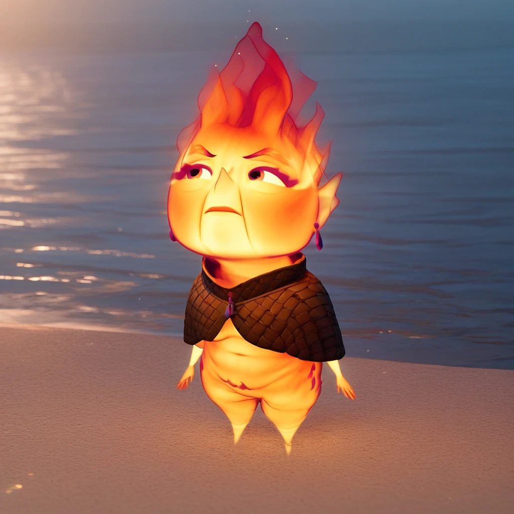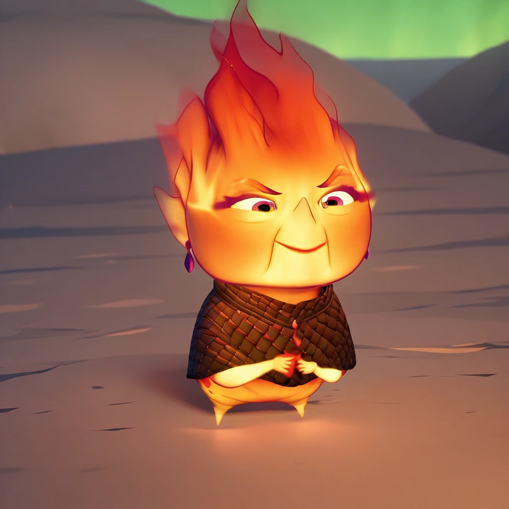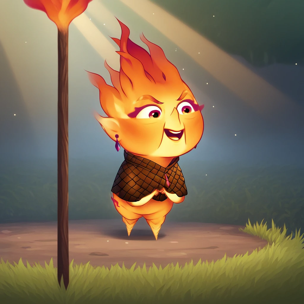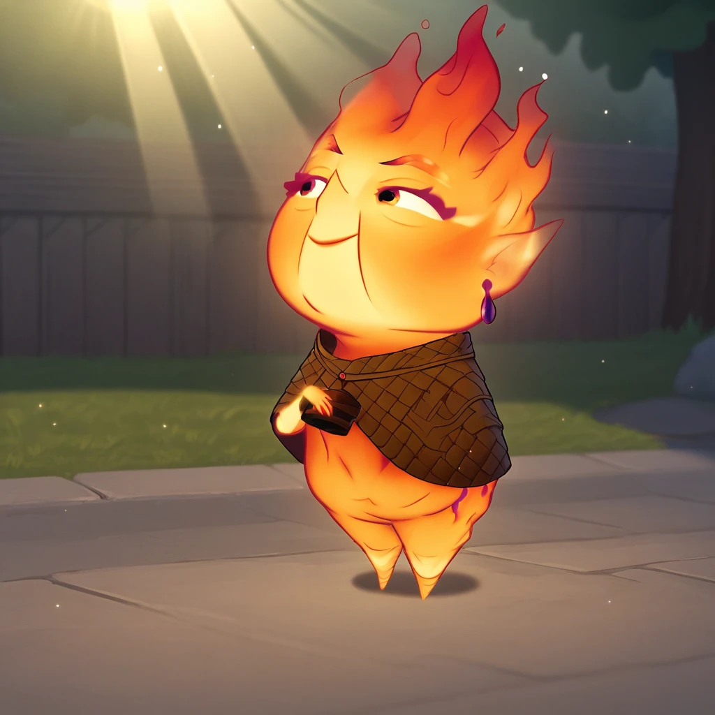 cinderlumen, 1girl, solo, fiery hair, earrings,