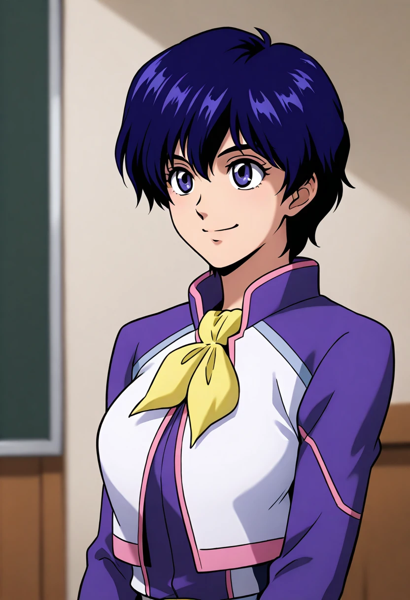 claire heathrow, short hair, blue hair, blue eyes, uniform