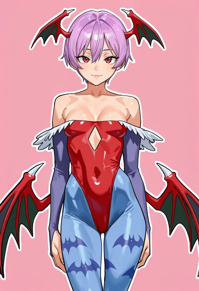 l1l1th, short hair, purple hair, red eyes, small breasts, head wings, low wings, bat wings,