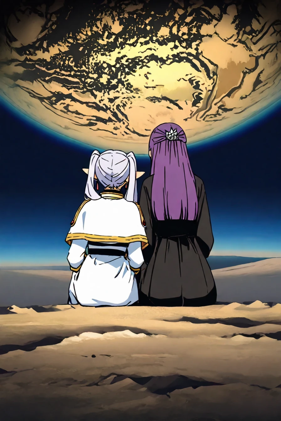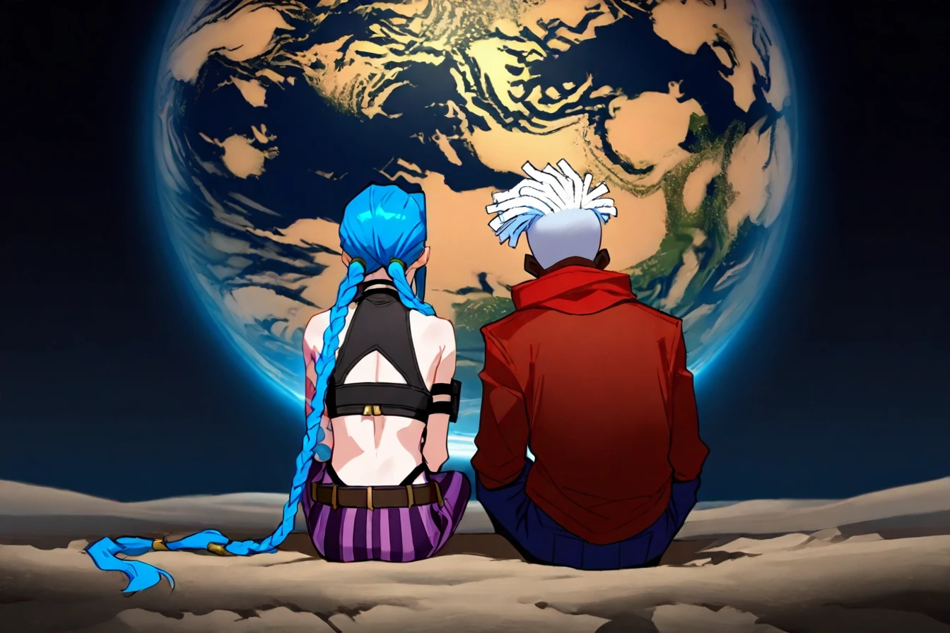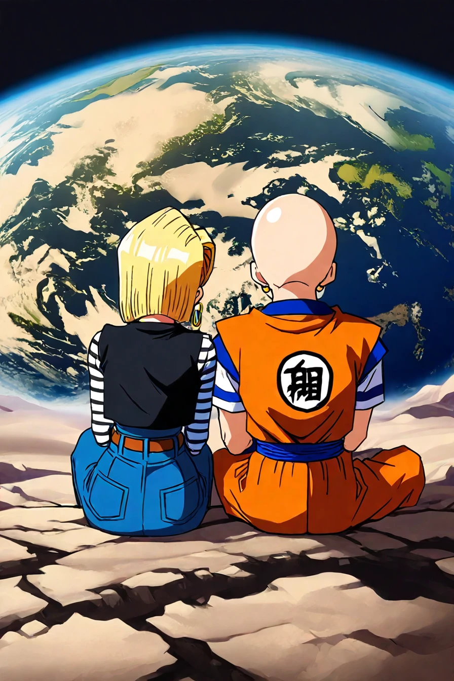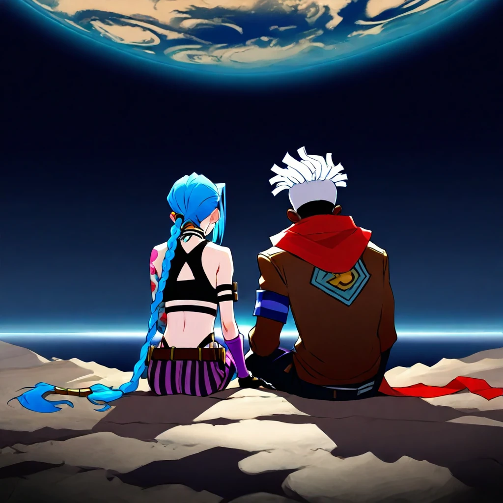 scenary from cyberpunk edgerunner : earth (planet), sitting on lunar surface