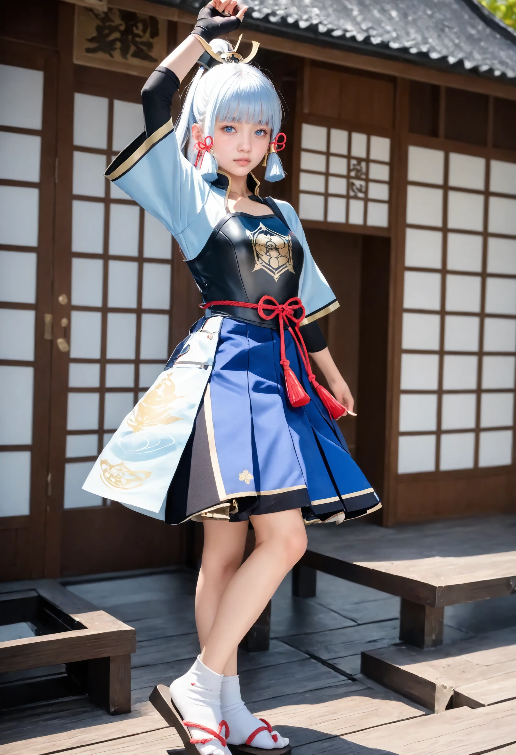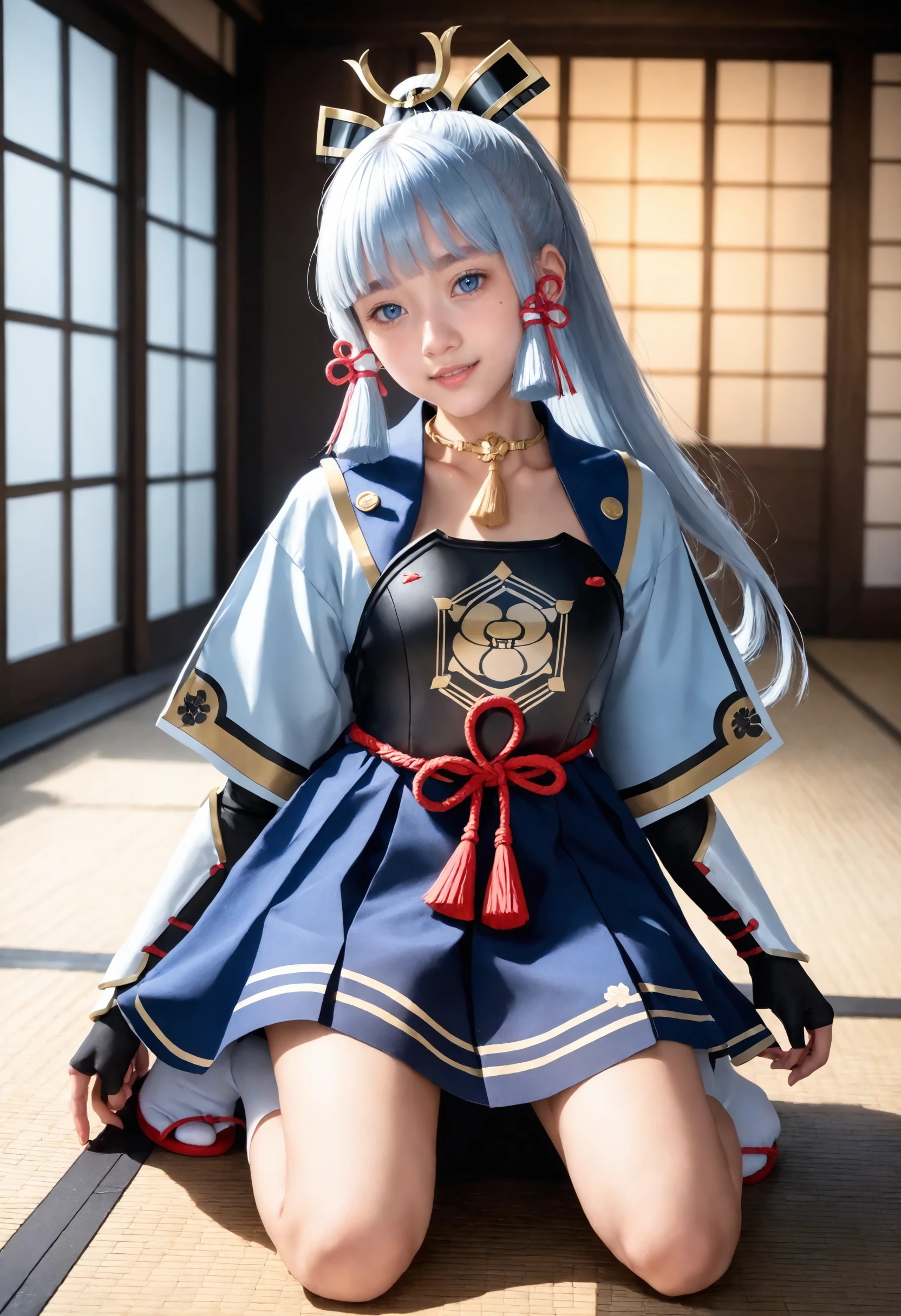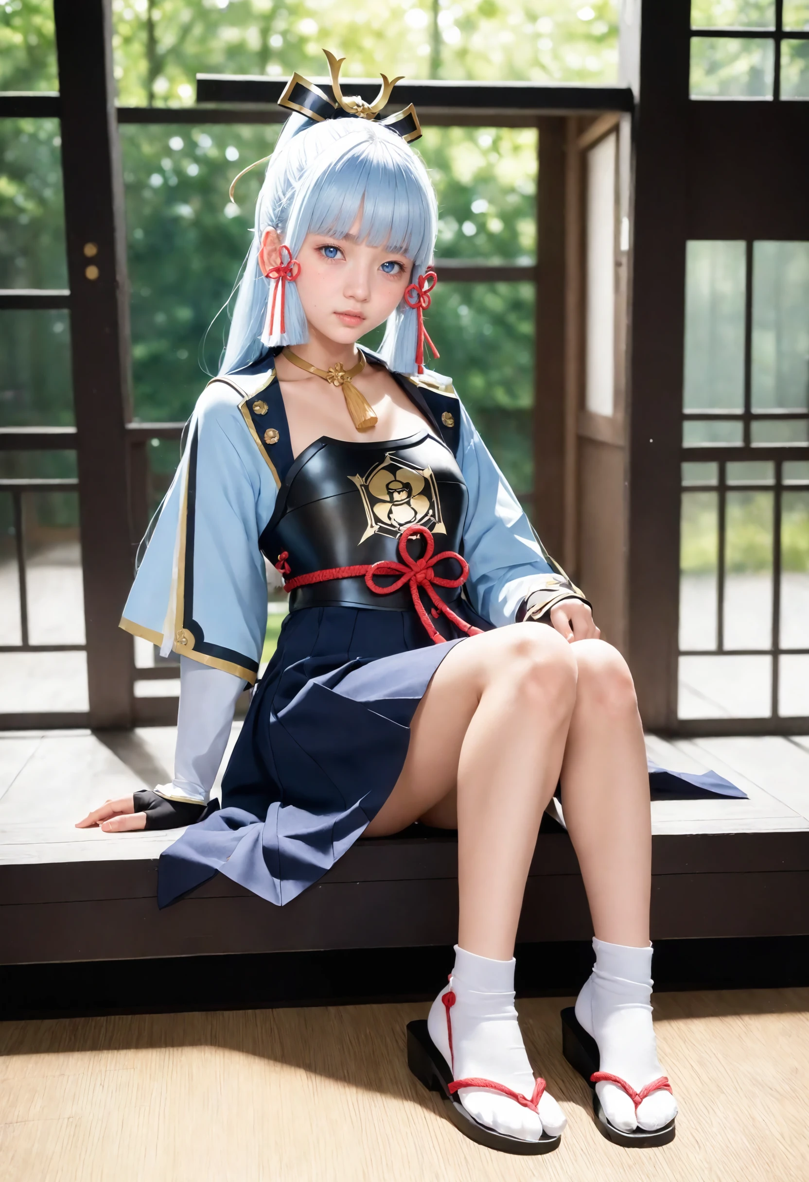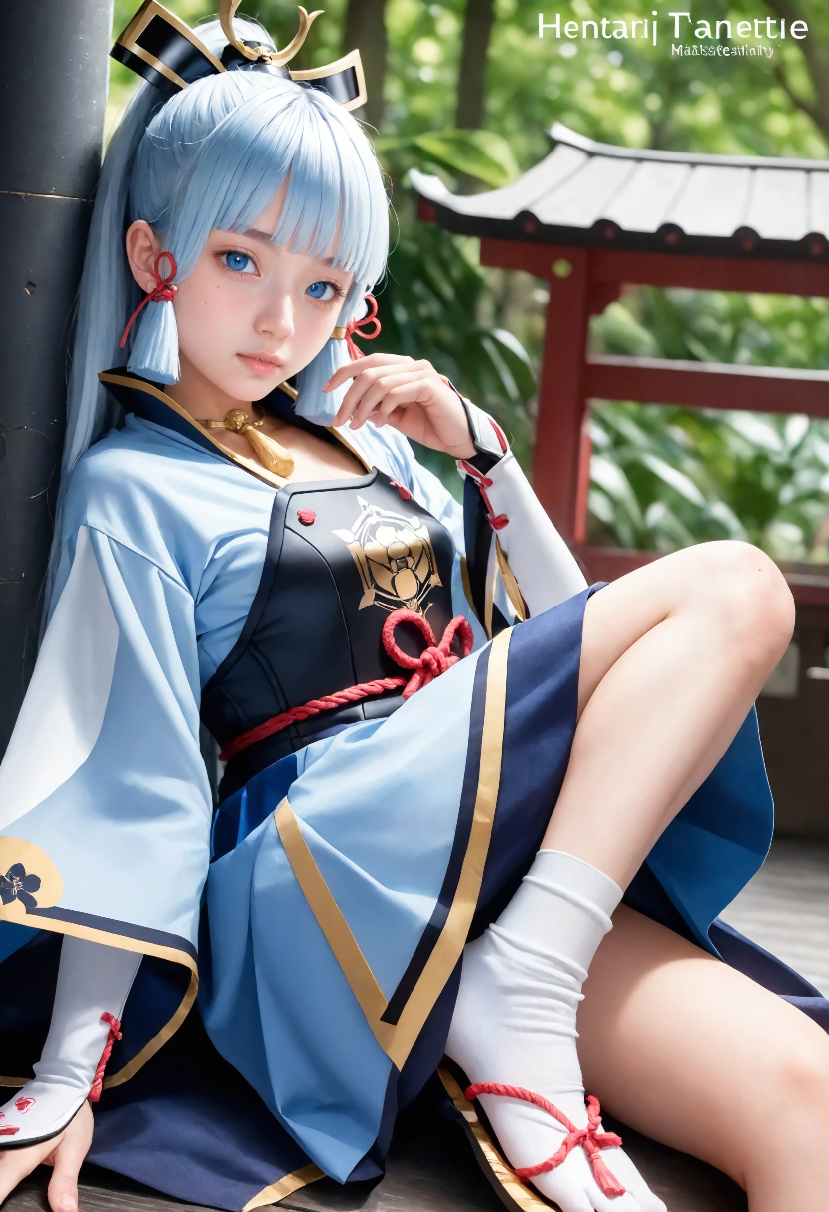 kamisato_ayaka, long hair,blue eyes,hair ornament,hair ribbon, blue hair,ponytail, sidelocks,blunt bangs, mole under eye,light blue hair,