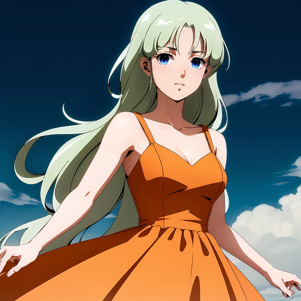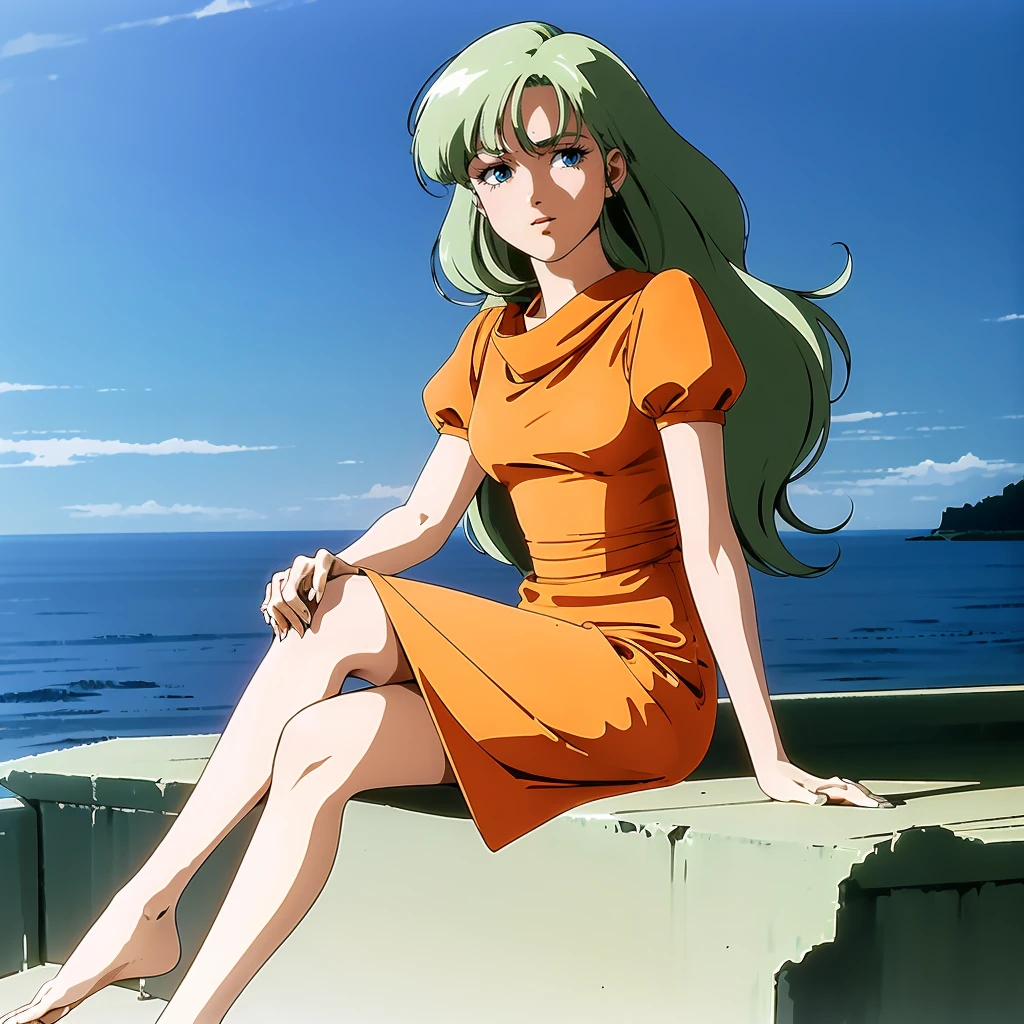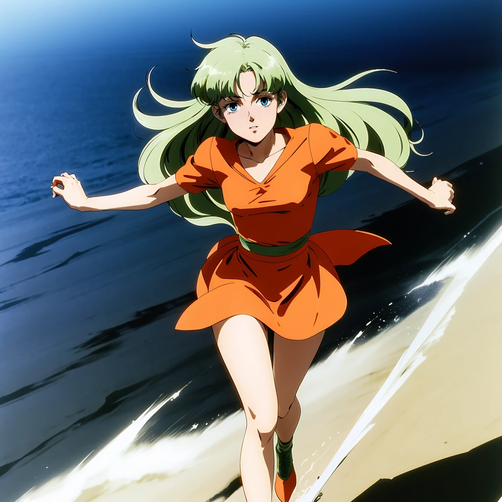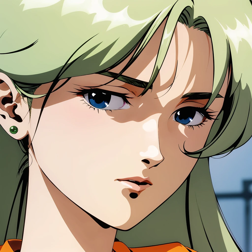 MiyukiAiba,1gilr,green hair,long hair,blue eyes,retro artstyle,1980s (style),