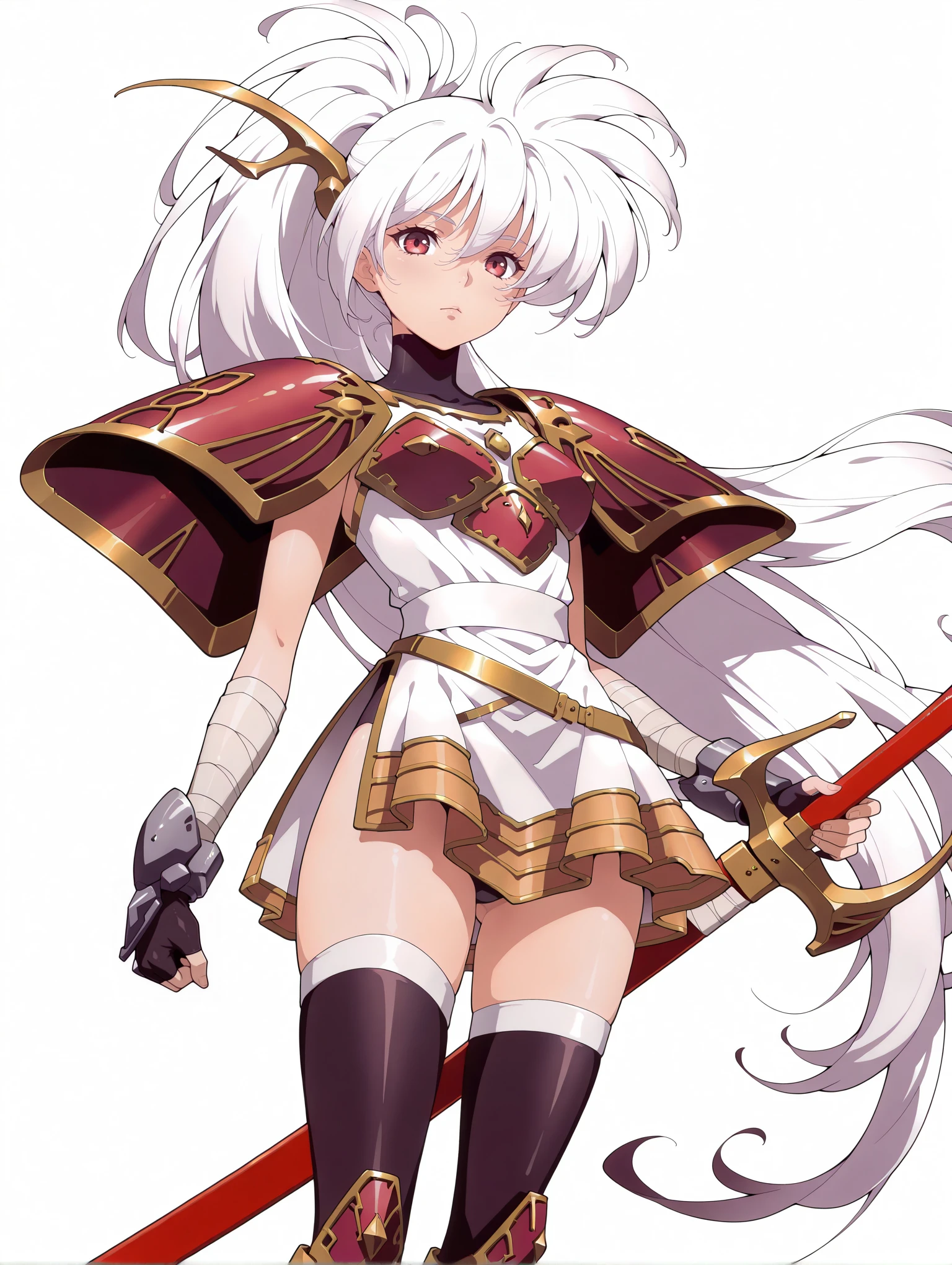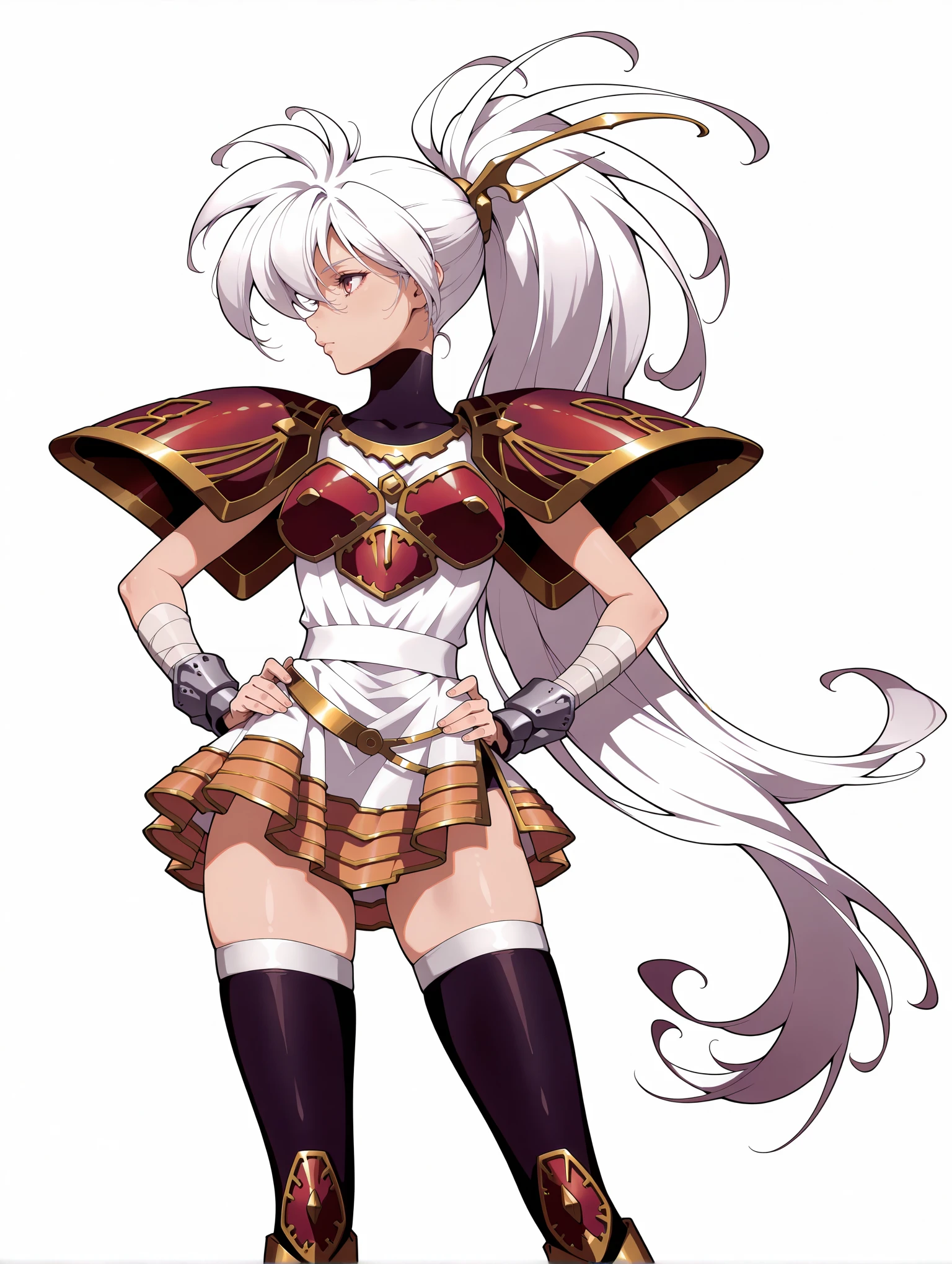 補助ワード ・white hair,red eyes, ponytail,hair ornament