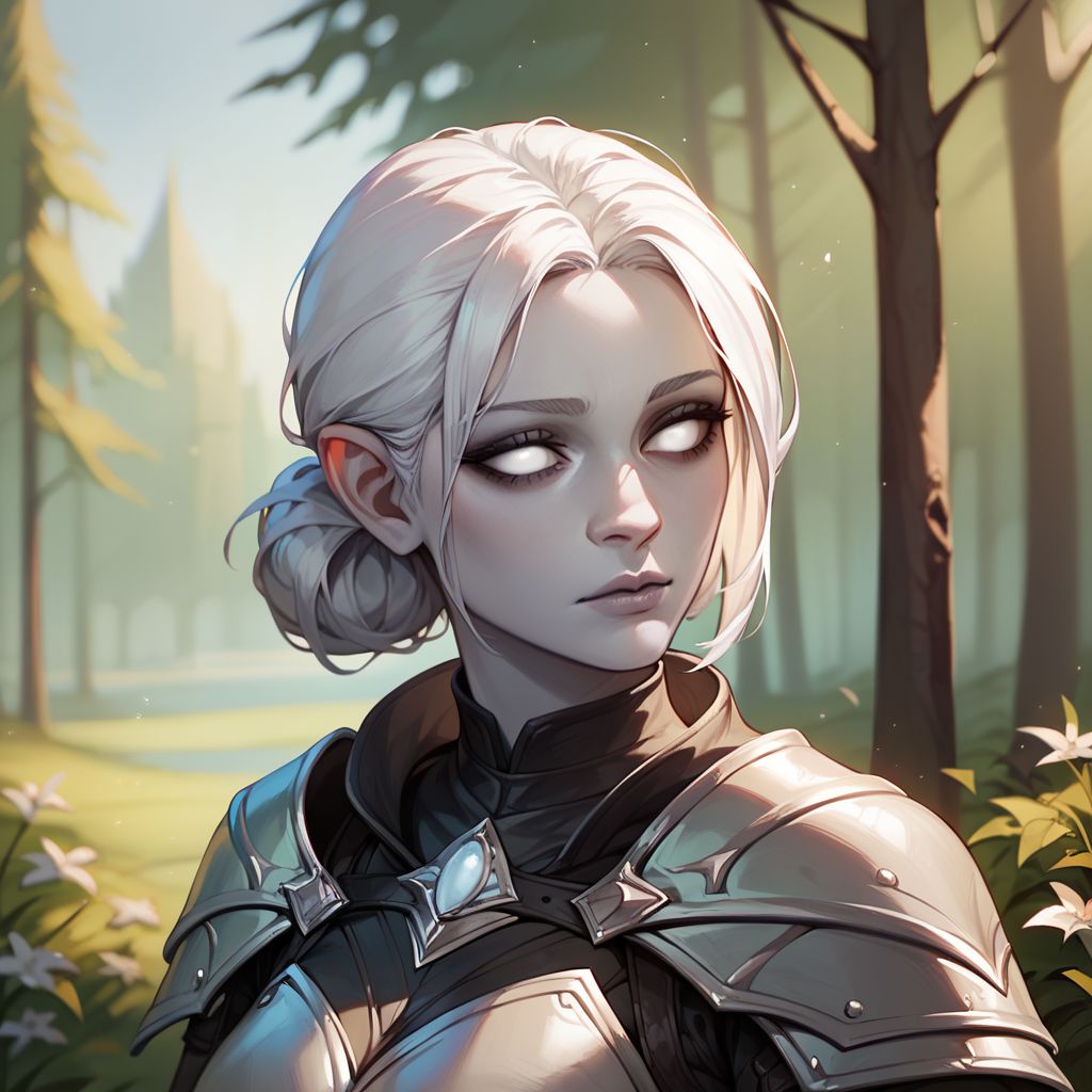 Changeling, gray skin, white eyes, white hair, dark eyelids