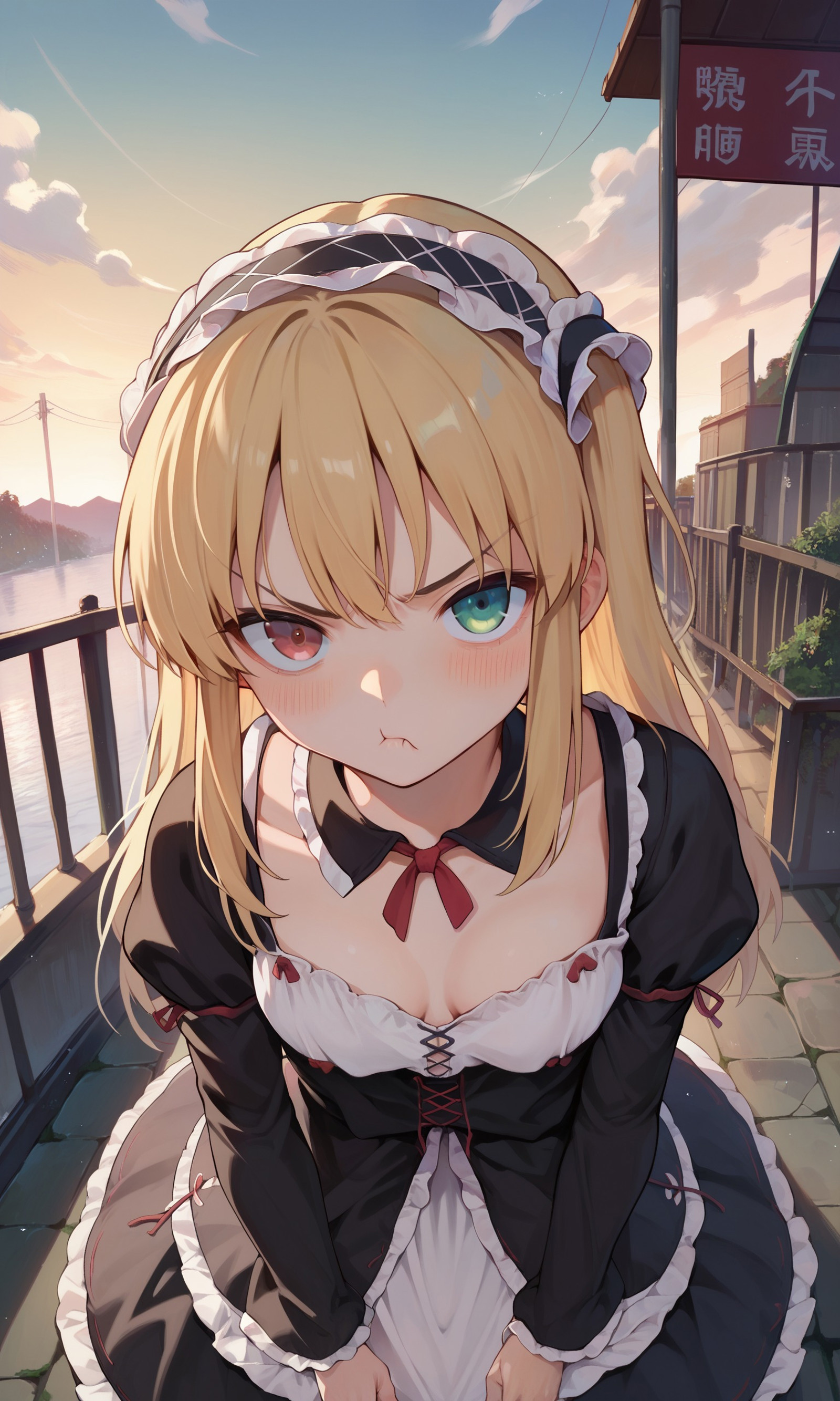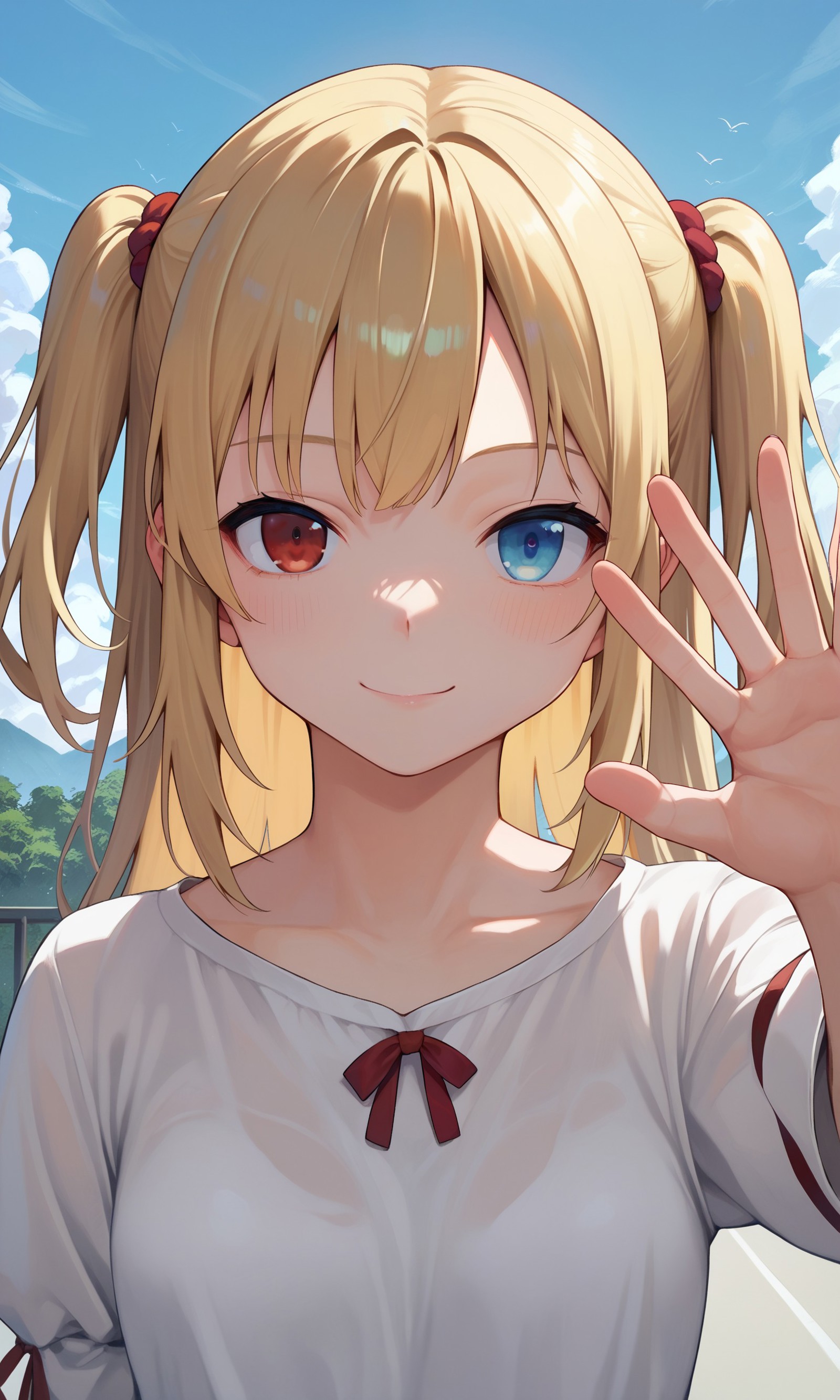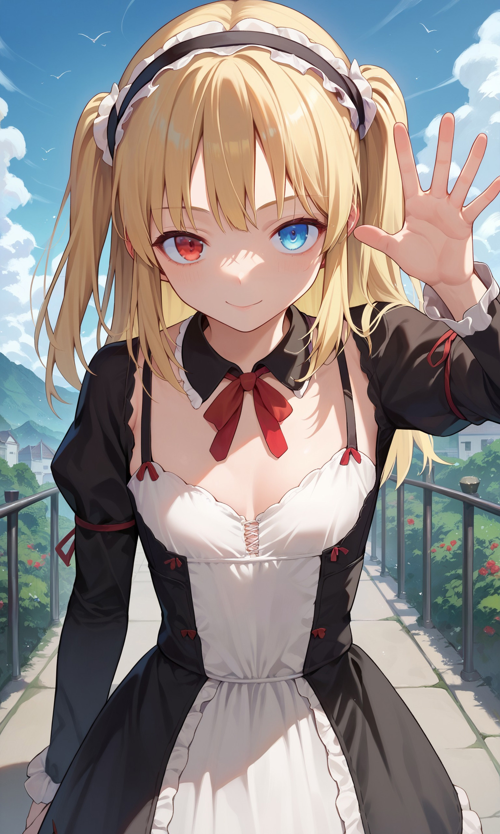 hasegawa_kobato, heterochromia, blue eyes, red eyes, blonde hair, two side up, hairband,