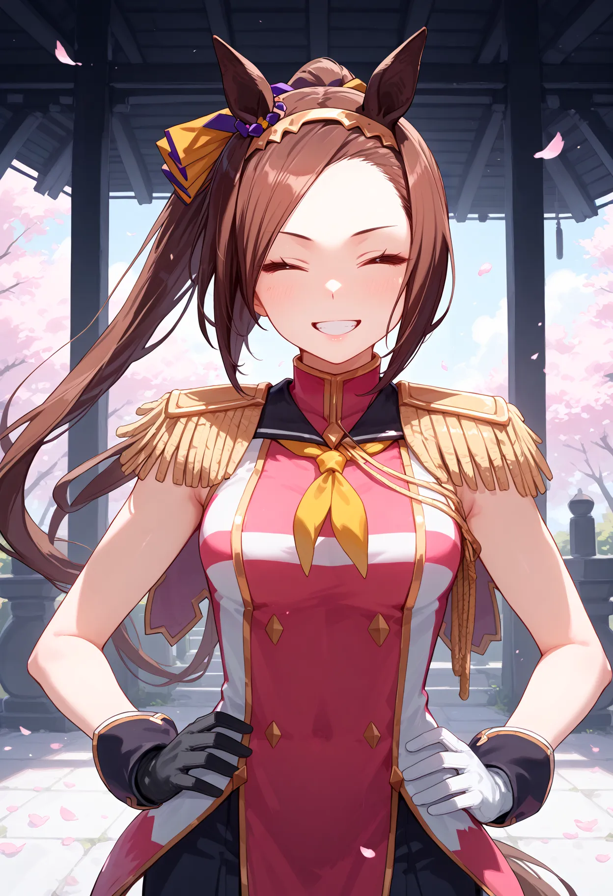 s_bakushin, brown hair, horse ears, horse tail, ponytail, symbol in eye, hairband,
