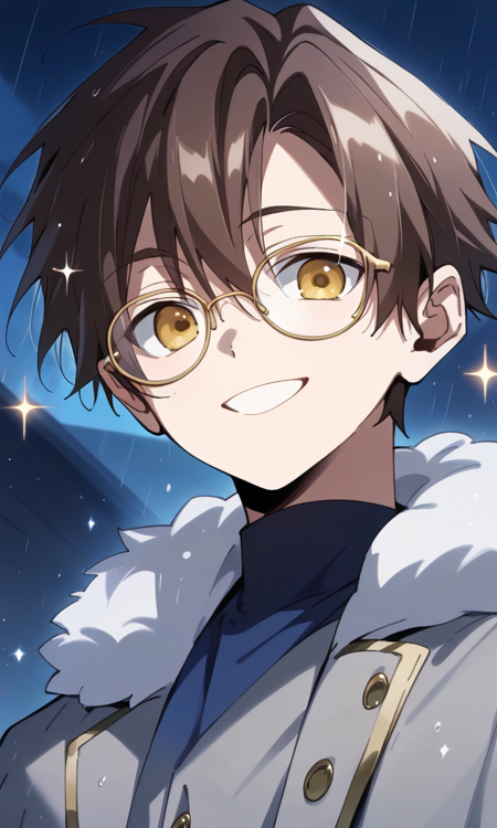 baek yuseol,brown hair,short hair,yellow,eyes,glasses,