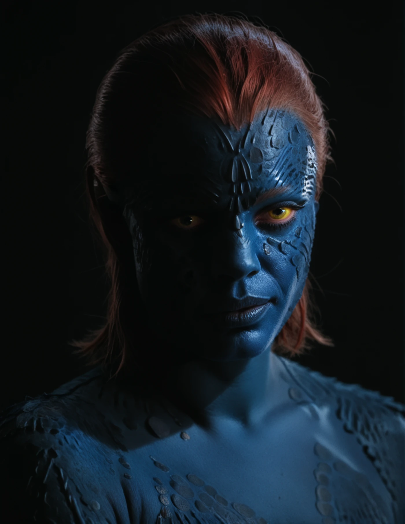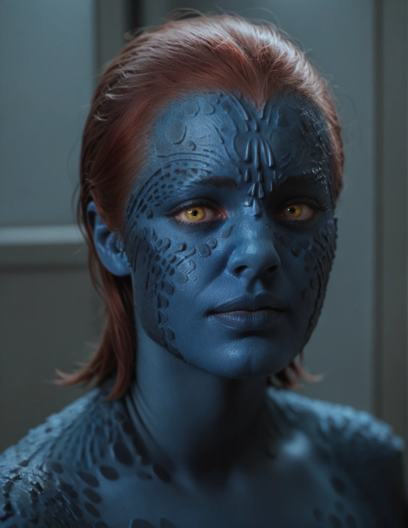 Trained on images from the character Mystique in the X-men 2000 trilogy movies, portrayed by Rebecca Romijn