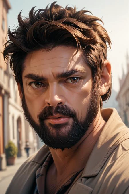 TBBButcher, 1boy, brown hair, beard, brown eyes