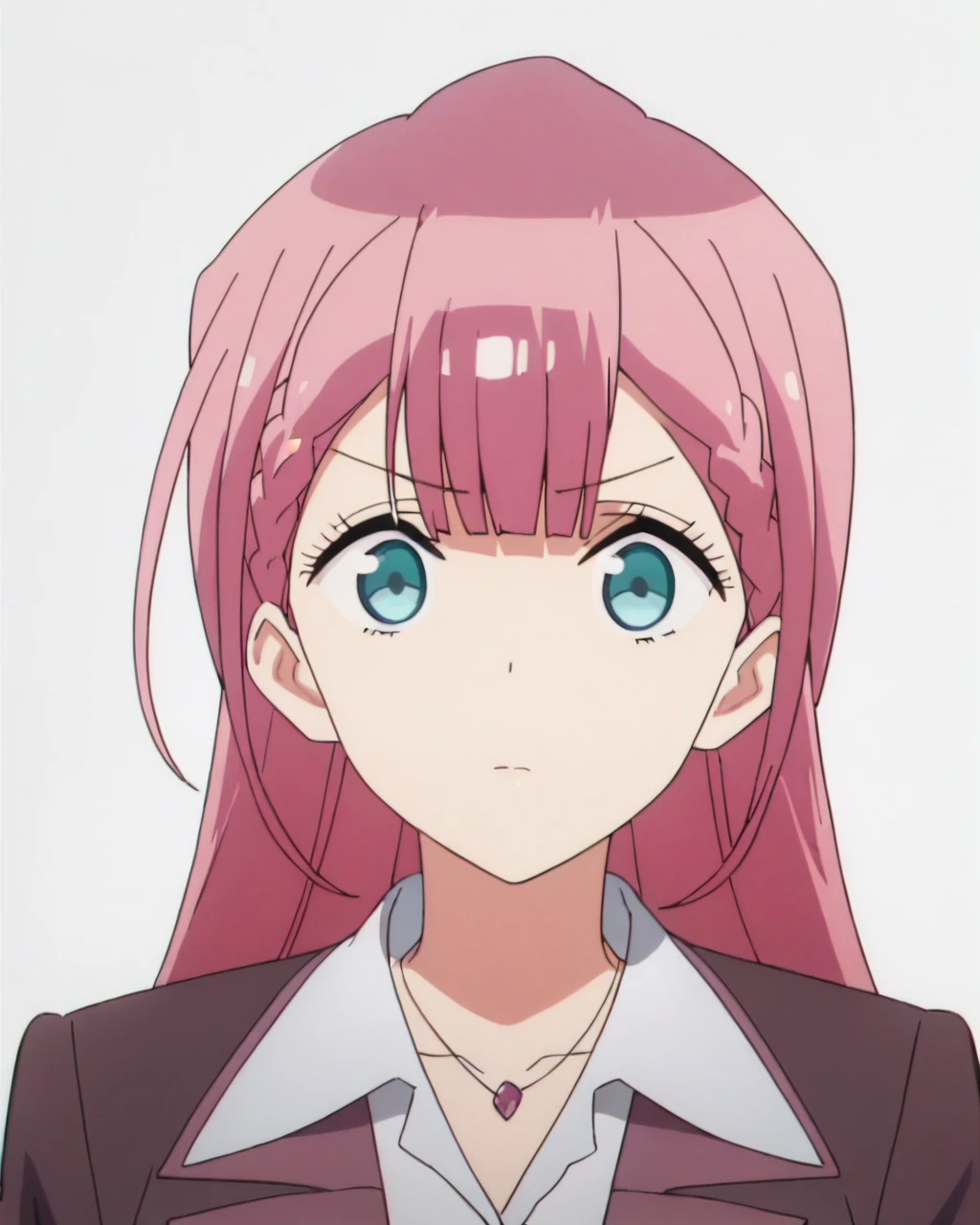 <lora:mafuyu-kirisu-s2-ponyxl-lora-nochekaiser:1>, mafuyu kirisu, blue eyes, braid, long hair, twin braids, pink hair, large breasts,