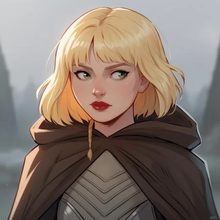 ShinHati, 1girl, solo, blonde hair, short hair, green eyes, lipstick,