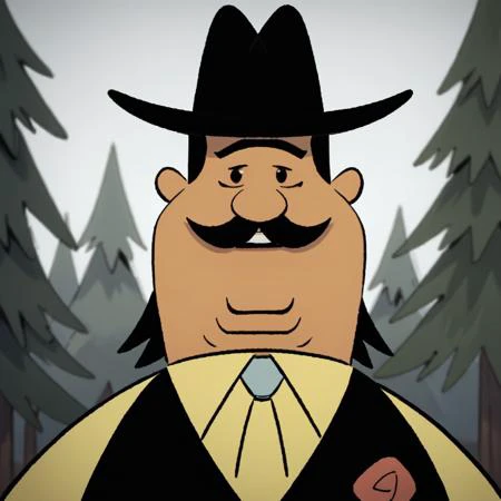 CarlosFlores, 1boy, solo, black eyes, mustache, hat, yellow shirt, black vest,
