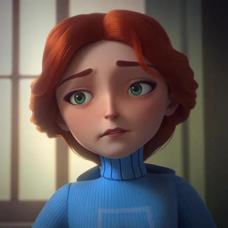 VirginiaOtis, 1girl, solo, red hair, green eyes,